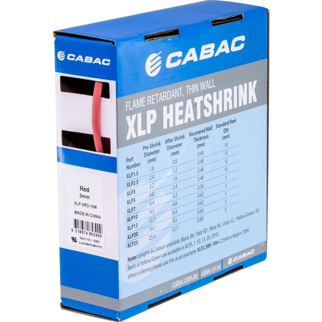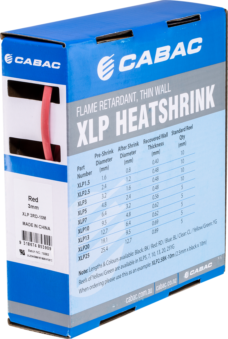 The XLP range of heat shrink tubing is made from polyolefin that has been cross-linked using high-energy electron beam technology. Upon the application of heat, the tubing will shrink down to approximately 50% of its pre-shrink diameter to deliver tight-fitting electrical and environmental insulation. To shrink our heat shrink tubing, we recommend the use of a CABAC heat gun (Part No. HG2232 or HG2233).