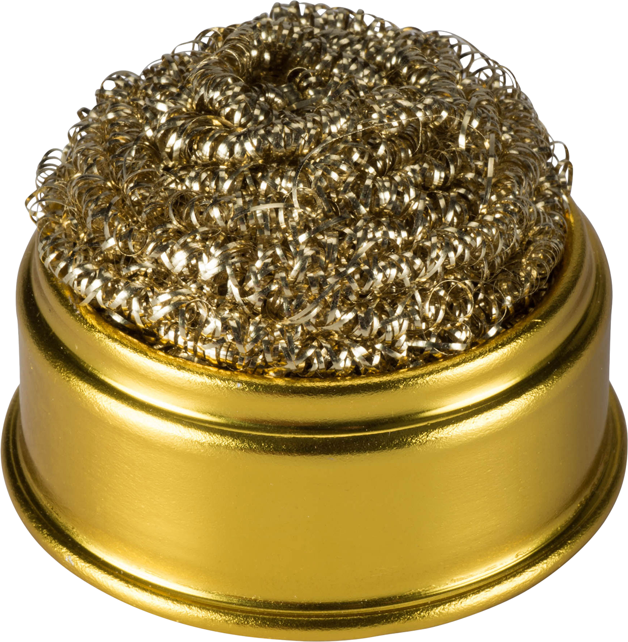 Thousands of thin curly brass ribbons scrub the baked-on flux left behind on your soldering tip. Easy solution for soldering jobs.