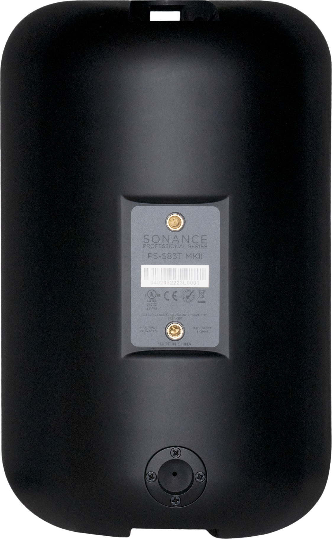 The Sonance PS-S83T MKII two-way surface-mount loudspeaker features a high-excursion 8" woofer, and 1" tweeter for clean, accurate sound. The weatherized IP45-rated enclosure includes Sonance’s Fast-Mount® bracket and front cable connection to speed up the installation process and provide a minimalistic appearance. UL1480 and UL2239 certifications ensure durability and safety.