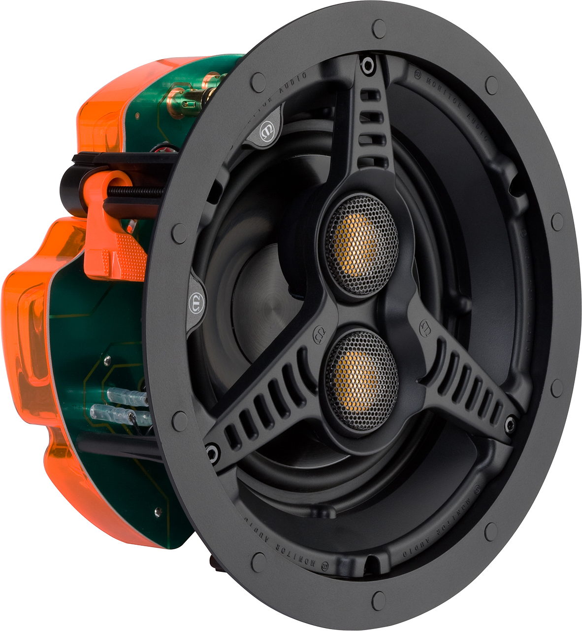 Features dual, independent, pivoting 1-inchC-CAMtweeters and a 6 1/2 inchMMP IIdual wound voice coil bass driver, for high performance stereo sound from a single speaker.