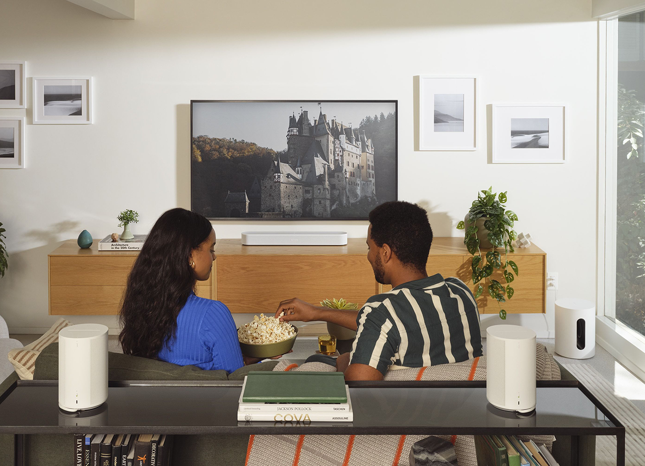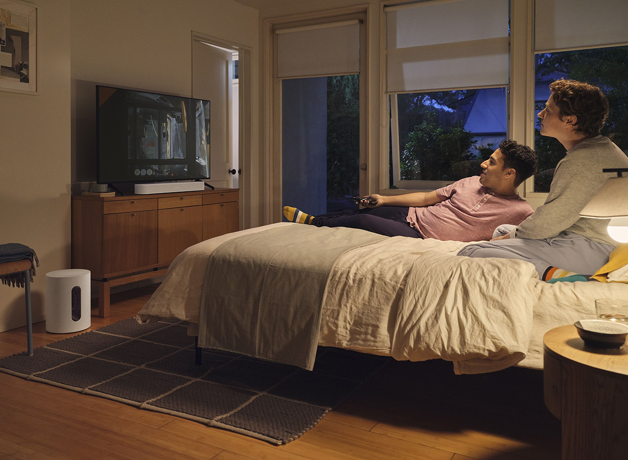 Unlock your entertainment experience when you pair Sub Mini with Beam or Ray. The 5 GHz WiFi connection enhances audio transmission speed so you can enjoy films, shows, and games with high-quality sound reliably synced with your TV.