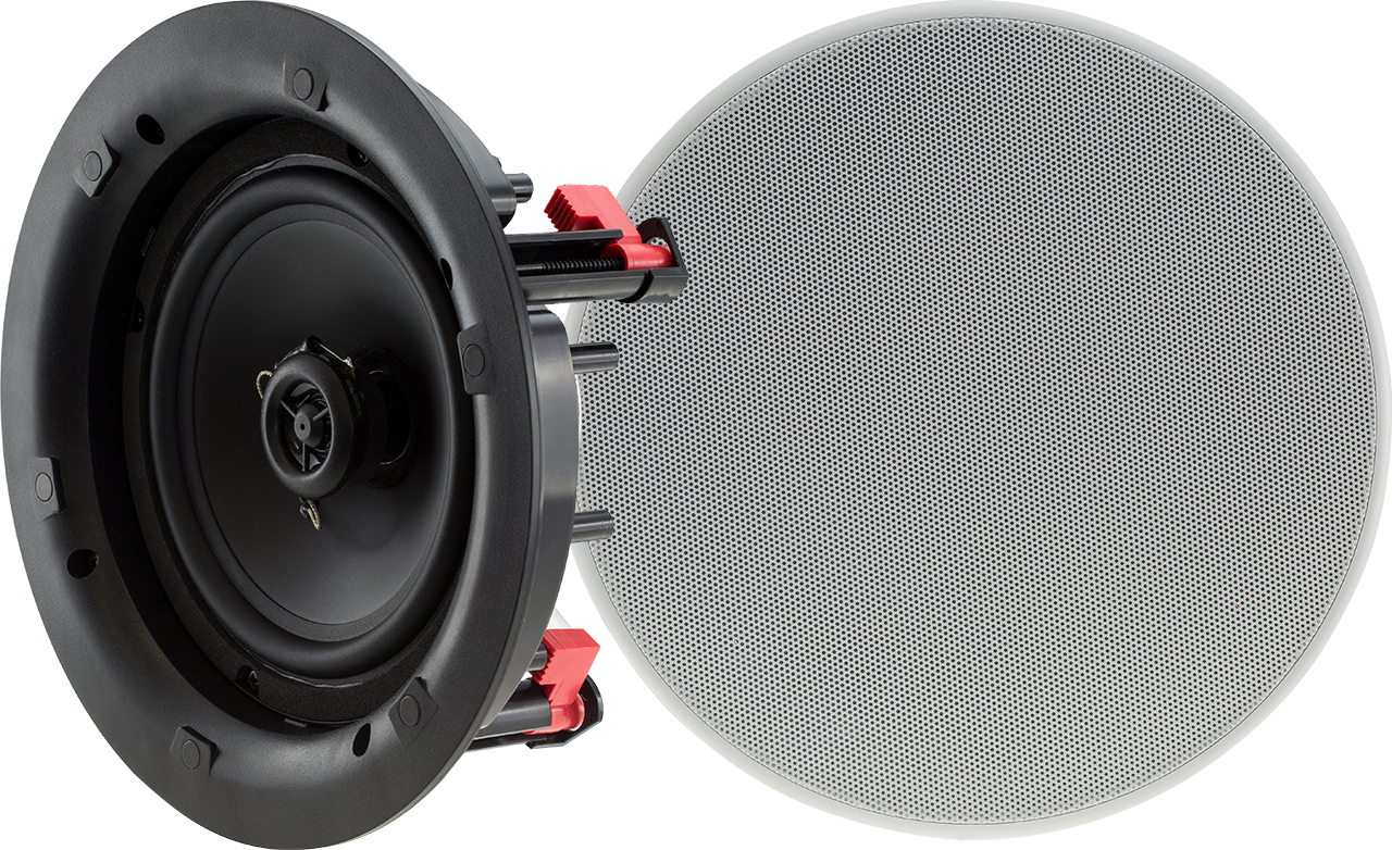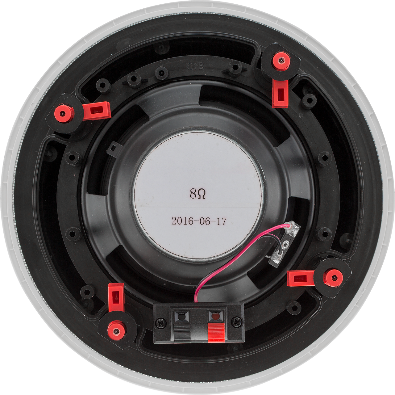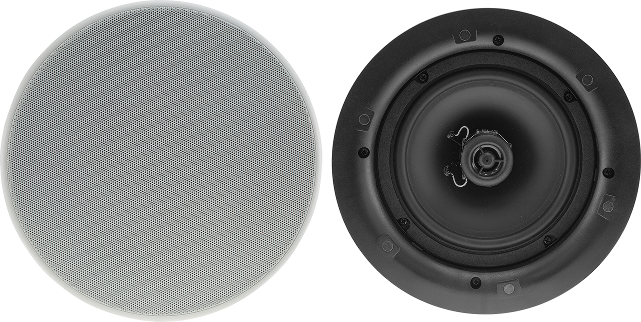 Coaxial wall or ceiling flush mount with 6.5" (165mm) woofer with treated paper cone & rubber surround & 1" (35mm) Mylar cone tweeter, designedto be mounted flush to walls or ceilings. Spring/push terminals for quick installation andfixing lugs automatically swing out when tightening no need to have rear access.