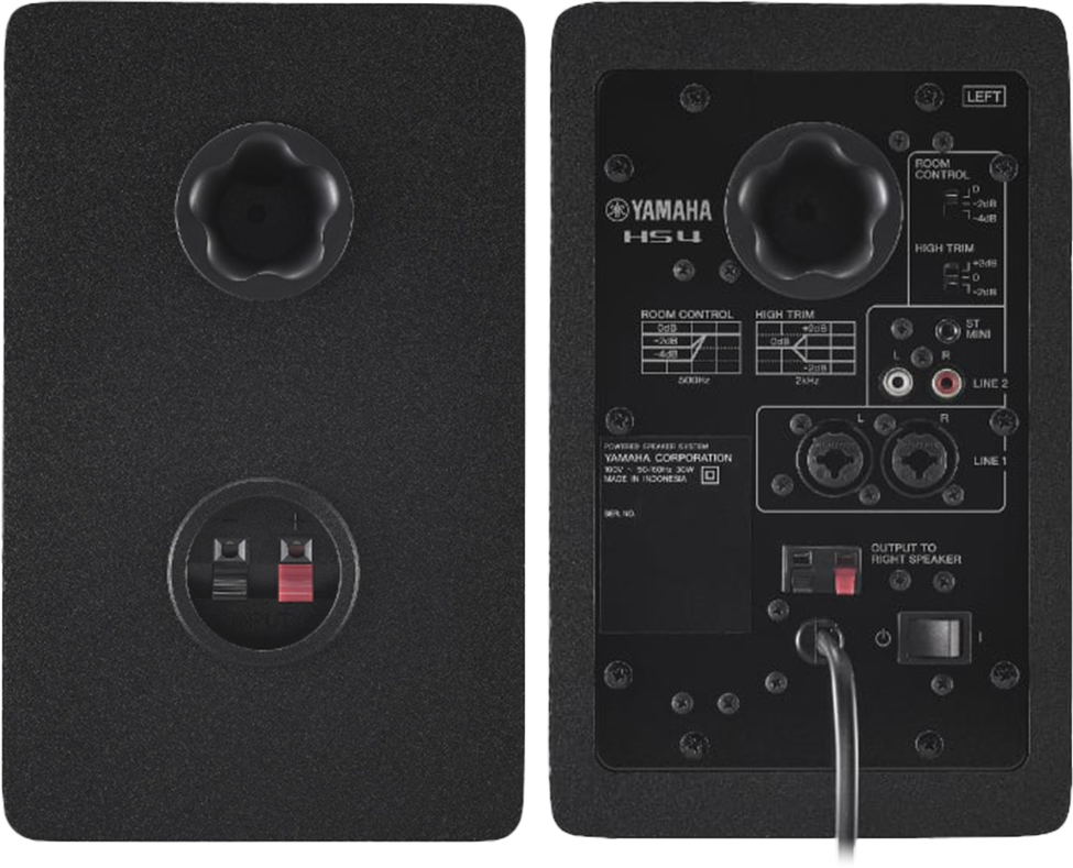 The rear panels of the HS3 and HS4 are equipped with ROOM CONTROL and HIGH TRIM functions that allow you to make adjustments to achieve the ideal sound for any environment, such as reducing the unneeded, exaggerated low-end that can often occur when speakers are placed next to walls.