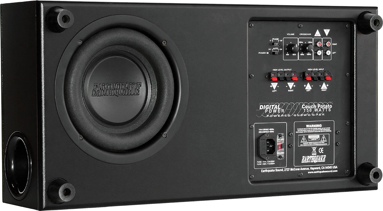 New bass from unused space! Earthquakes new SleekWave CP8 subwoofer can what others can not. It can be placed under / behind a sofa or bed. With a SleekWave subwoofer, you can now get a powerful and deep bass without taking up space on the floor. SleekWave CP8 is based on the same over sized quality components known from the successful SUB80 subwoofer. A powerful 150 watt amplifier and an 8-inch long-throw woofer with 2 inch voice coil ensures high output and long life. A large bass port on the front of the subwoofer ensures high output of the lowest frequencies and gives the strong woofer optimal working conditions, resulting in strong andaccurate bass. The bass port allows you to get bass out from under a couch or bed without loss of precision and energy. With a height of only 17.8 cm it can be stored under most sofas and beds. It can also be placed on the side if thereis space between the back of the couch and the wall. Ifyou have a mere 17.8 cm of space there is room for strong bass.