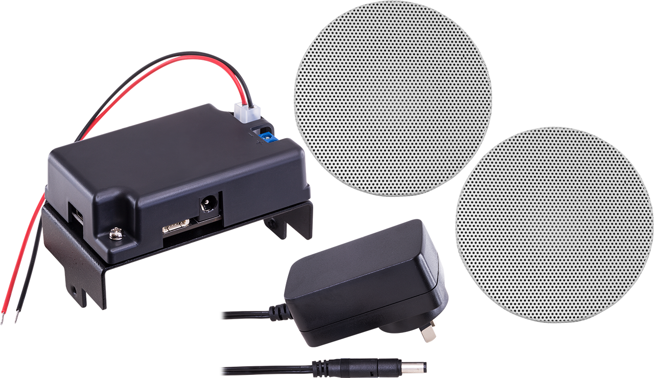 The built-in amplifier autosenses a Bluetooth® sync to power ON/OFF.