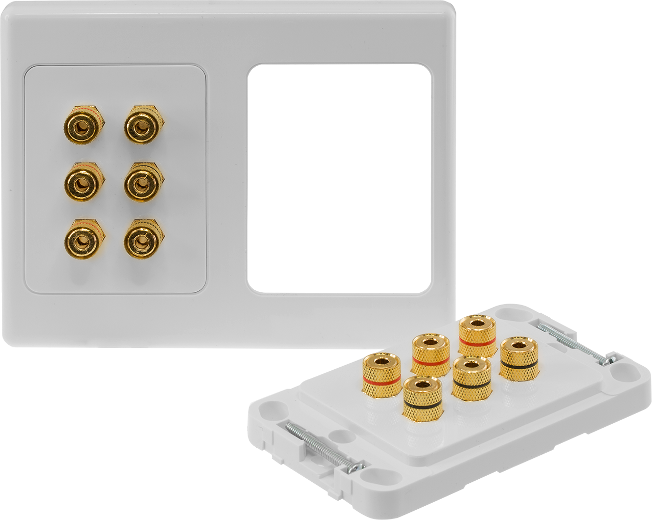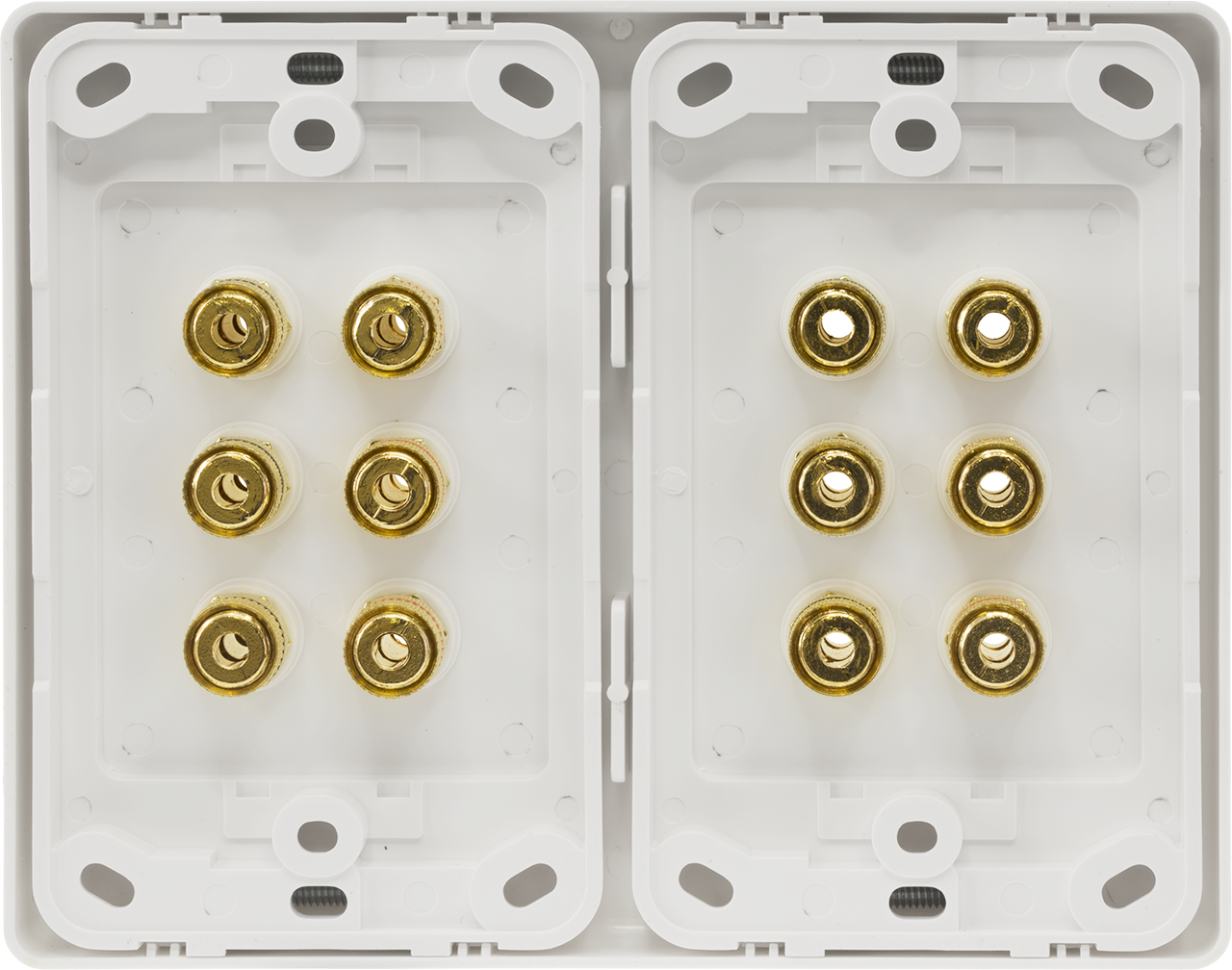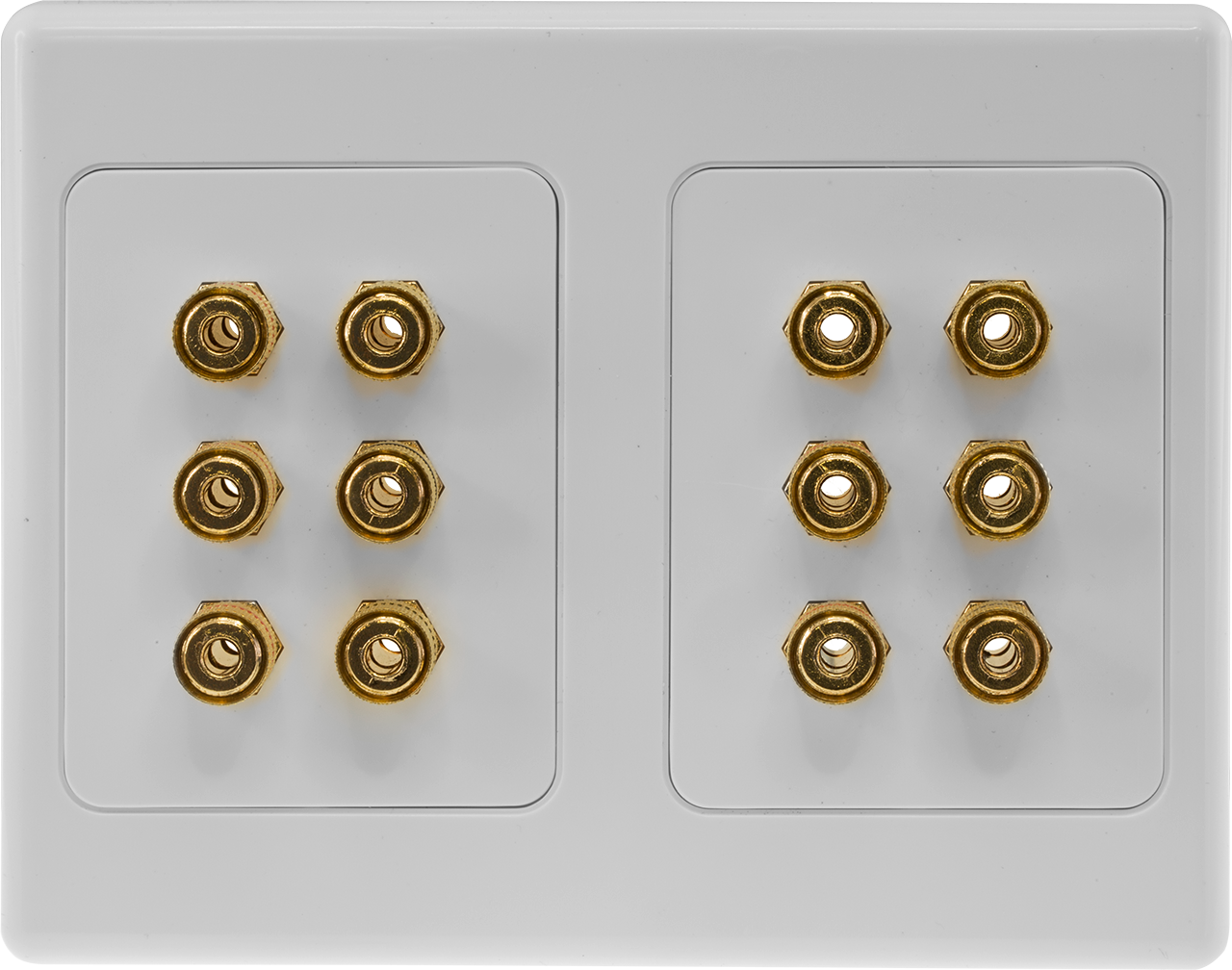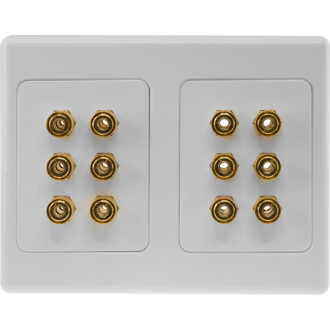 The ideal wall plate to connect to your 7.1ch AV receiver. Decora trim plate 14 gold-plated heavy-duty, solderless binding terminal posts 1x RCA socket for connecting to a subwoofer Binding posts support 4mm banana plugs