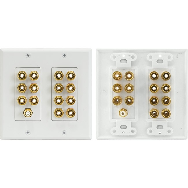 The ideal wall plate to connect to your 7.1ch AV receiver. The PRO1144A includes 14 terminals to connect your front, main, and centre speakers as well as an RCA connection to hook up to your subwoofer.