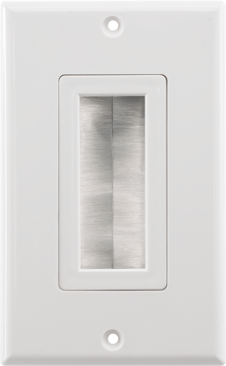 This brush wall plate allows cables to enter the wall cavityspace without the need of interconnect wall plates in between. Ideal for pre-made leads directly out of the wall cavity.