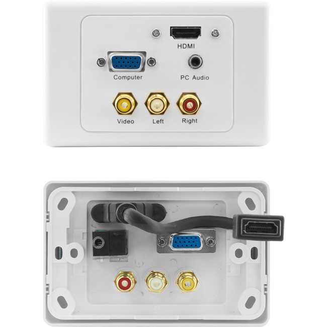 Connect your HDMI, VGA, 3.5mm Audio and RCA cables from yourdesired source to wall. Specifications