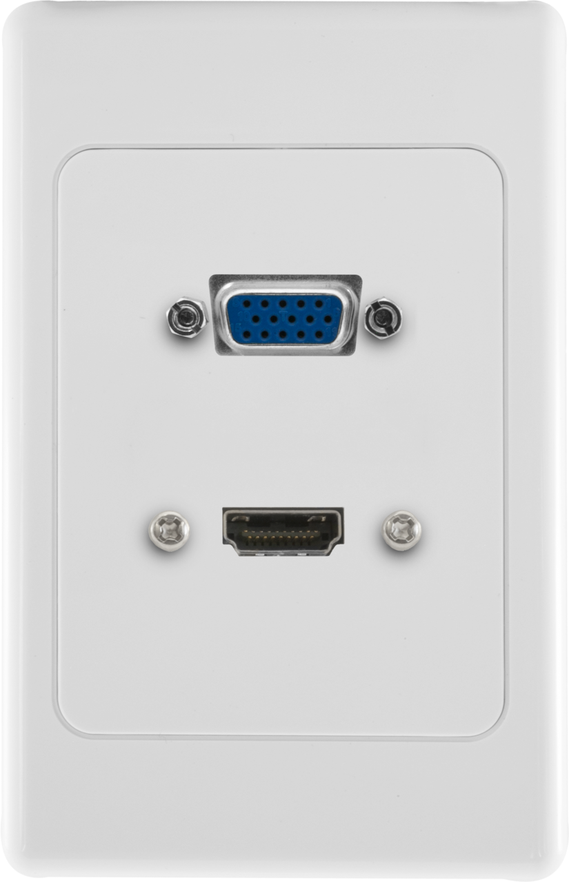 The fabulous PRO3420 HDMI and VGA wall plate is a convenient solution for setting up a wall-mounted display orceiling mounted projector. This Clipsal-style wall plate features HDMI and VGA connectors for neat, stylish, and uncomplicated connections.