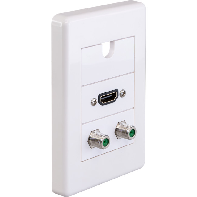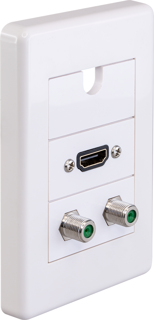 This prechose modular wall plate comes with 1x Modular wall plate frame, 1x HDMI socket, 1x Dual 'F' sockets, 1x 11mm hole cutout bridge module, which saves your time to think and choose from all the different modular options. Of course, you will still build your custom wall plate if you like. MWI13B11 insert is designed to allow a continuous 4K HDMI lead to passing through a cleverly designed 11mm cut-out to avoid signal loss in all the joints when running a 4k or 18gbs signal from a source to the TV. This cut-out allows for any cable up to a gauge of AWG24 to run directly through the wall plate.