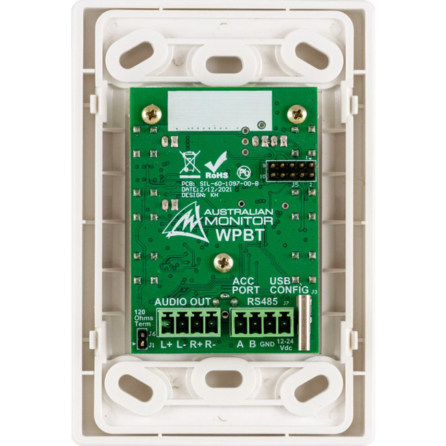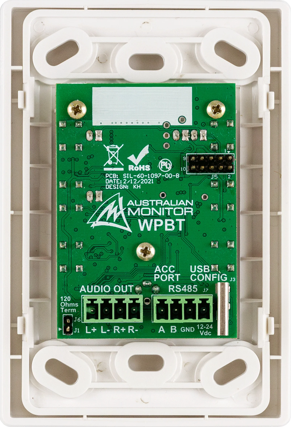 The WPBT is a programmable Bluetooth®audio receiver and auxiliary input wall panel. Featuring Bluetooth pairing and media controls as well as a source selector.