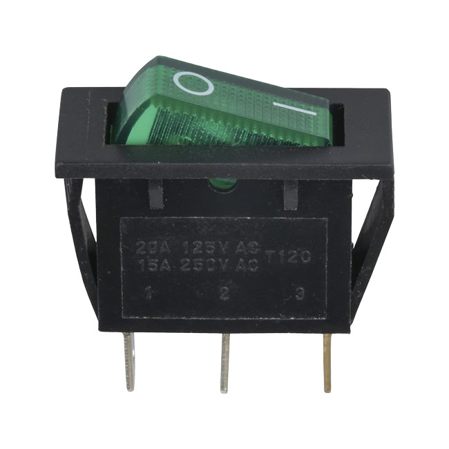 Rocker Switch Illuminated Green SPST 15A 240VAC