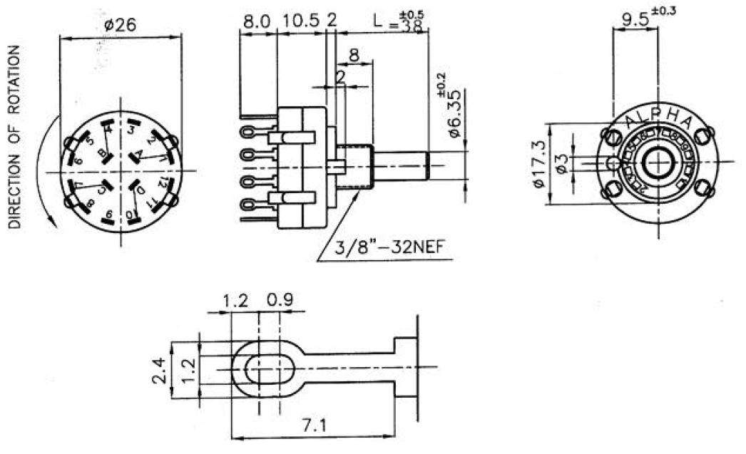 All moulded plastic, enclosed design with round type shaft. Posidex indexing gives excellent positive movement.