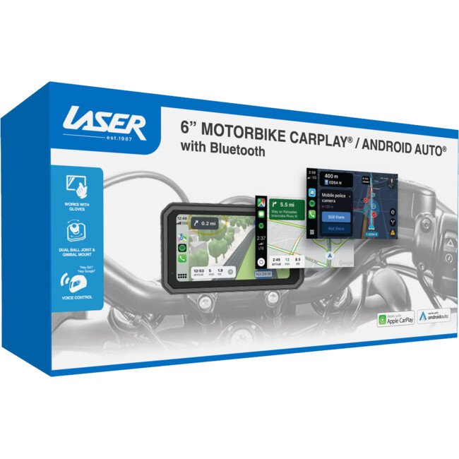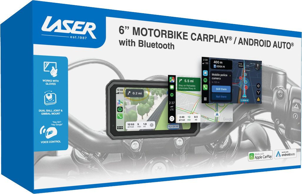 Smart riding made simple with the Laser 6" Motorbike CarPlay / Android Auto.