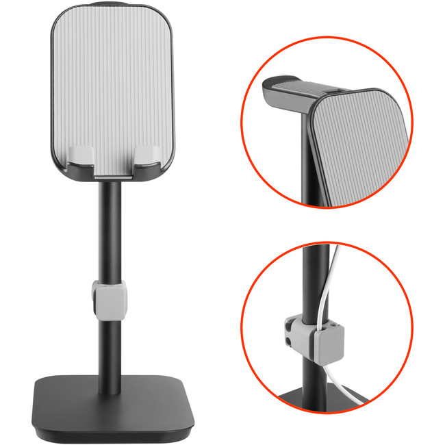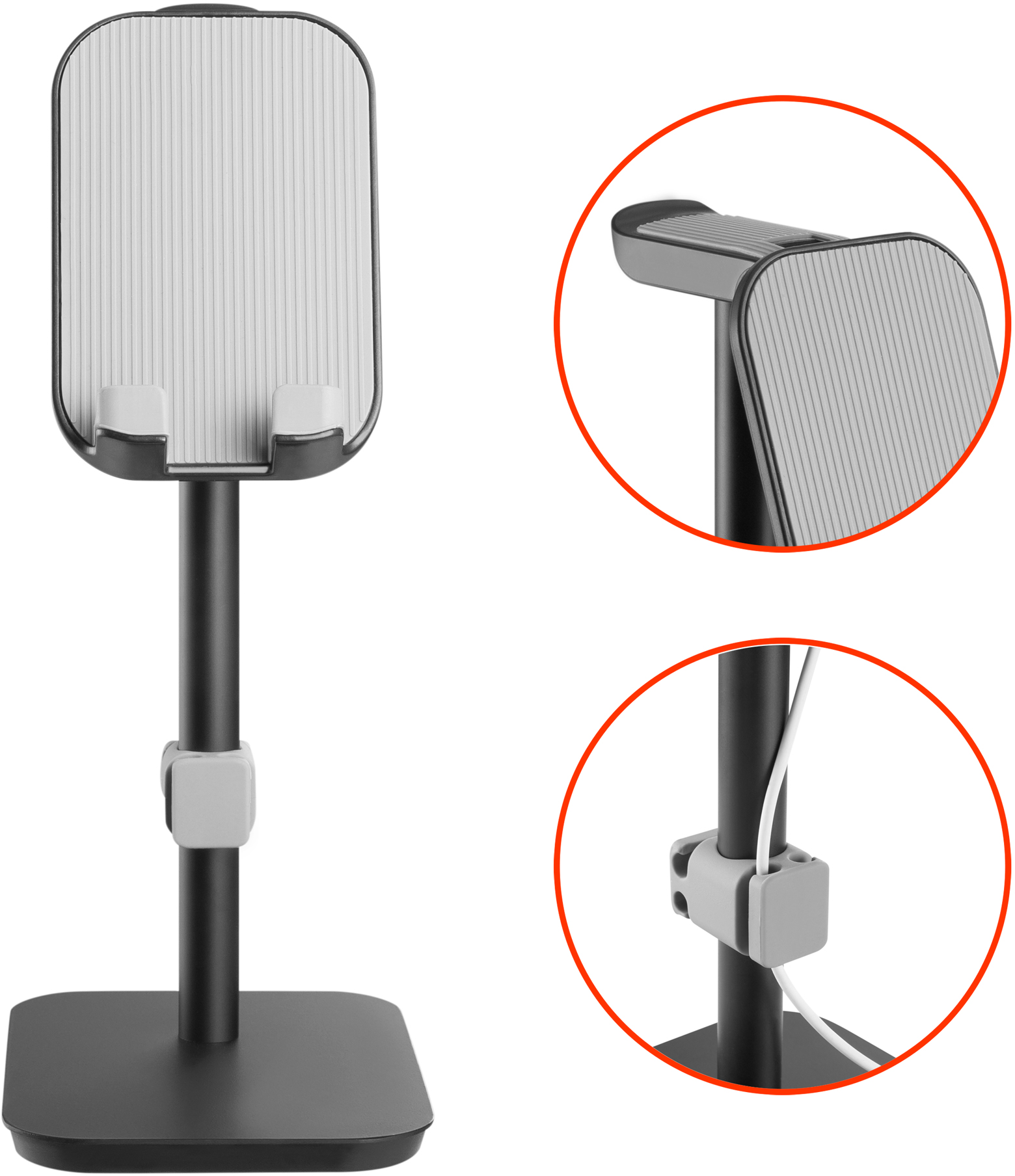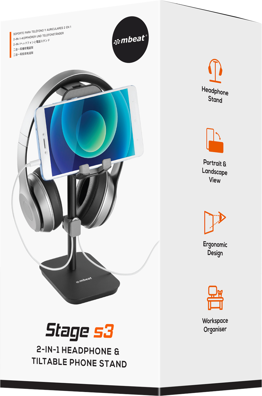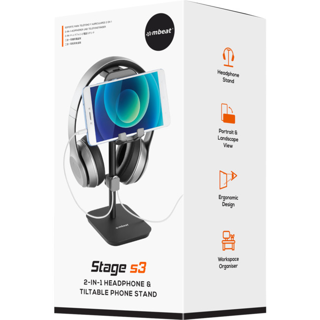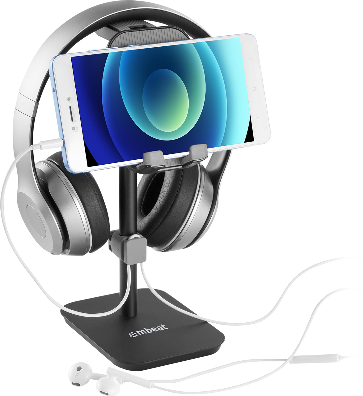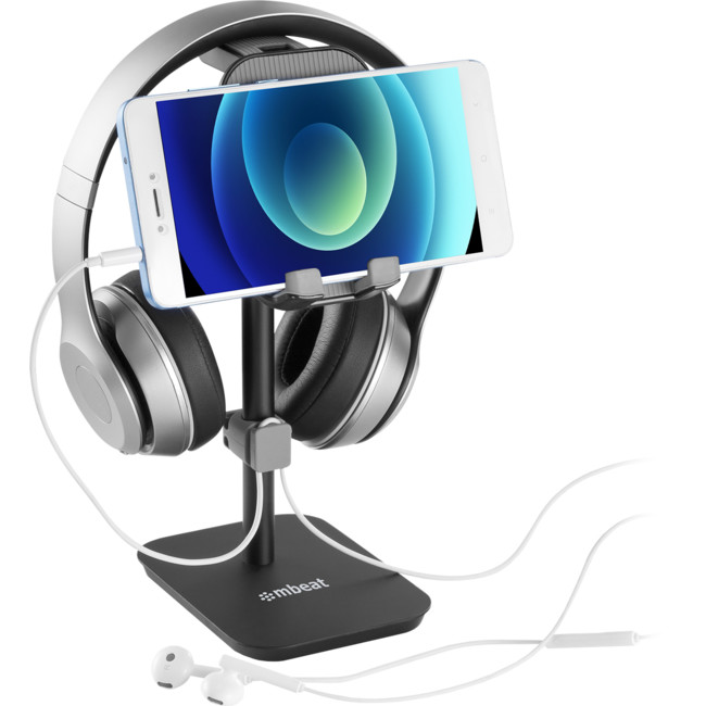 Keep your headphones off your desk with the 2-in-1 storage and display stand that organises and minimises clutter on your workspace. Featuring non-slip silicone padding to prevent wear and tear to your devices; keep themhandy while remaining presentable. Doubles as a phone or tablet holder with tiltable holder for ergonomic viewing angles; view/operate your device hands free with a sleek and stylish storage solution. Complete with cable management clip that lets you charge while in use, making it the perfect desk side companion.