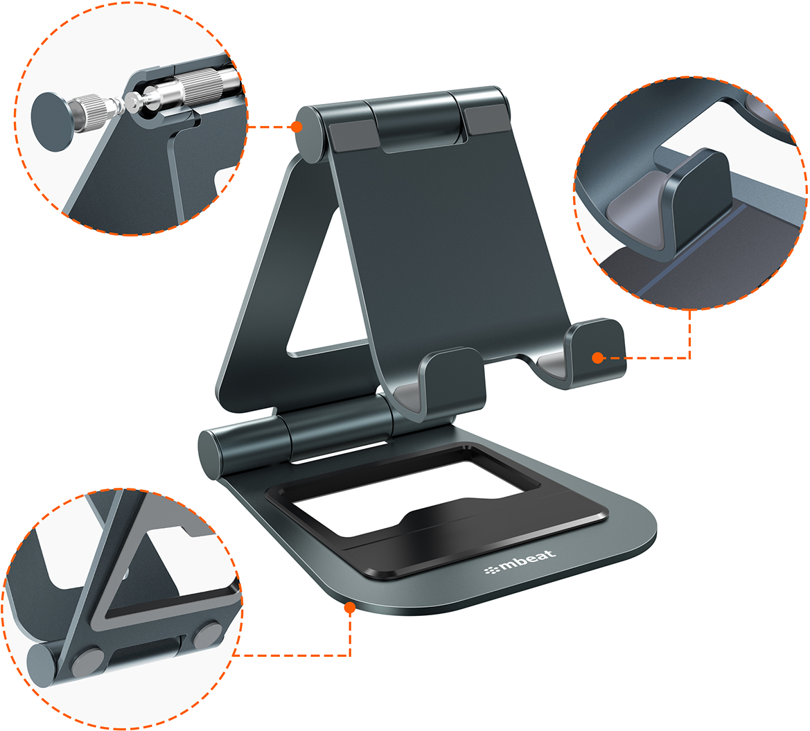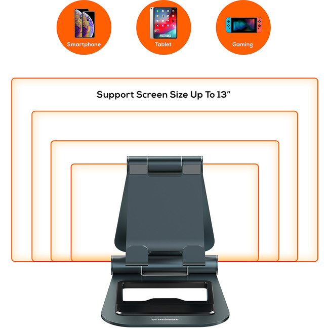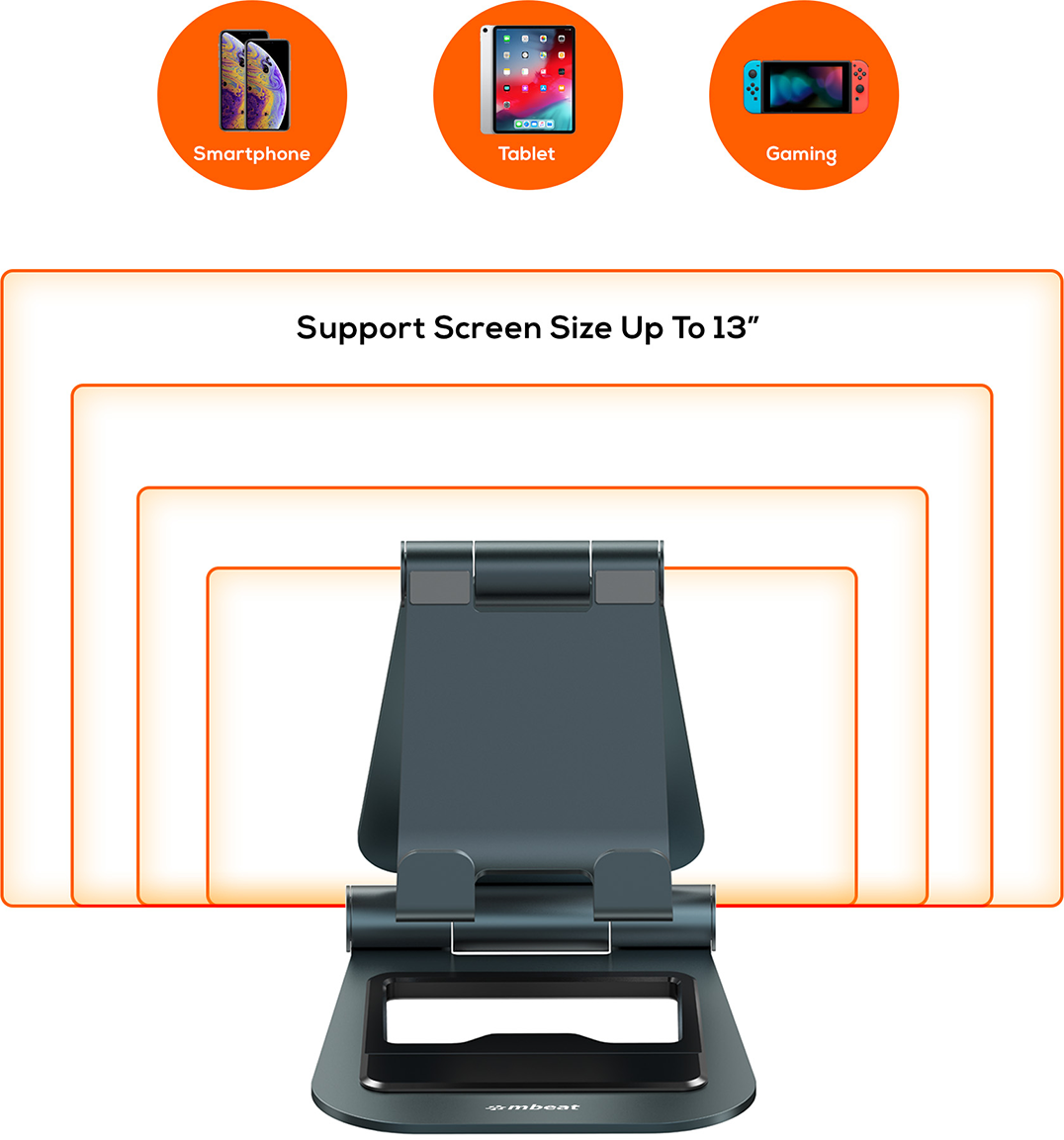 This stand lets you securely display your phone or tabletwithout any clamps or gimmicks, while keeping your devices elevated for an interactive and ergonomic viewing experience. Collapsible with advanced hinge design allows for maximum space-saving portability and long-term durability. Featuring protective anti-slip silicone pads to protect your devices and improve stability, can support tablets up to 13” in size and3kg in weight, this is the ultimate phone/tablet accessory at home or on the go.