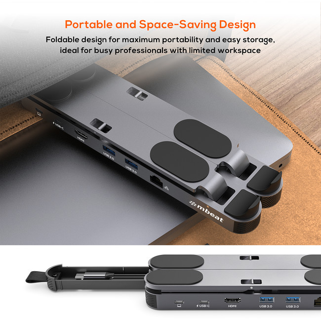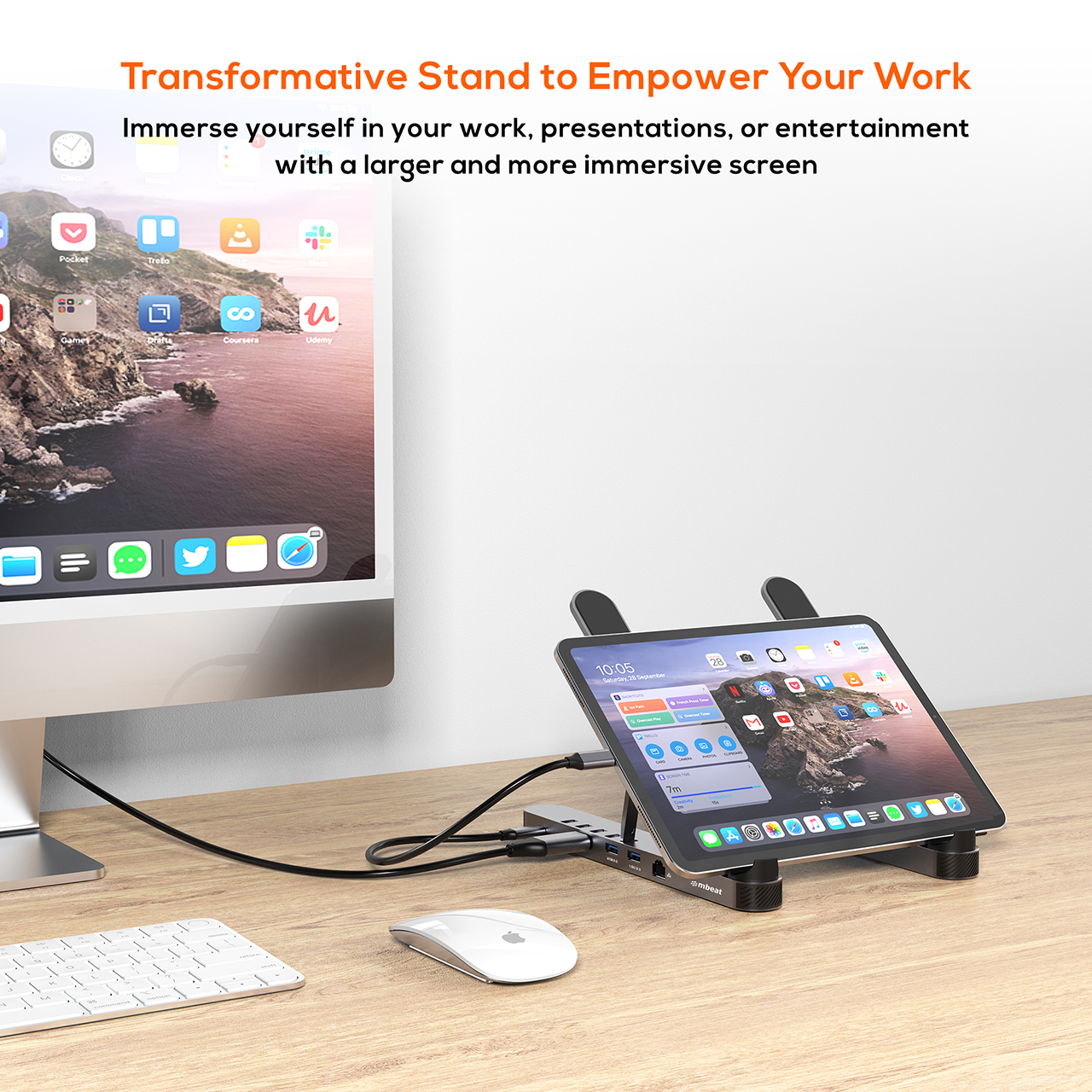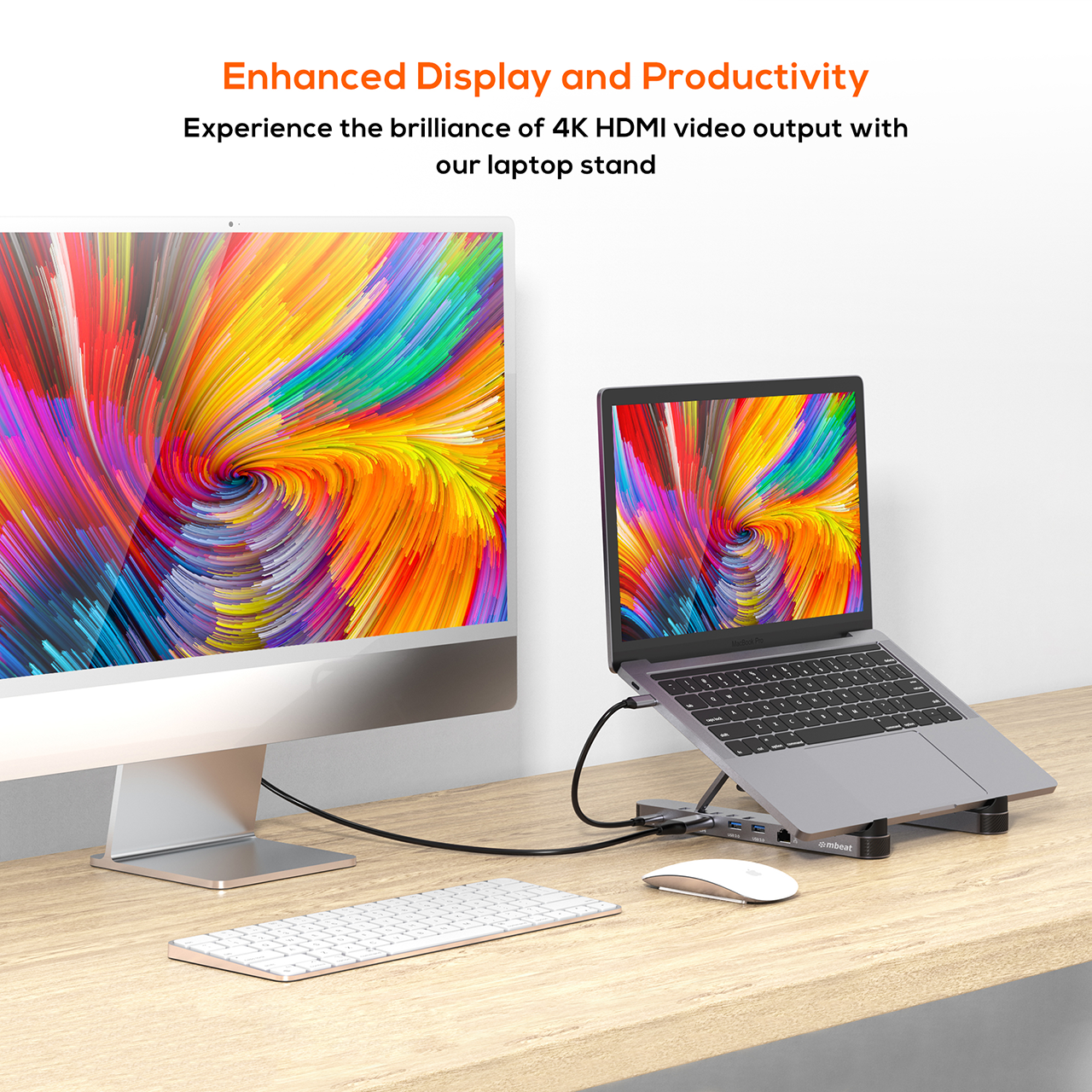 Experience brilliant 4K HDMI video output with our laptop stand. Connect an extra monitor for enhanced viewing during complex projects, multitasking, or multimedia enjoyment. Unlock your potential with an additional screen.
