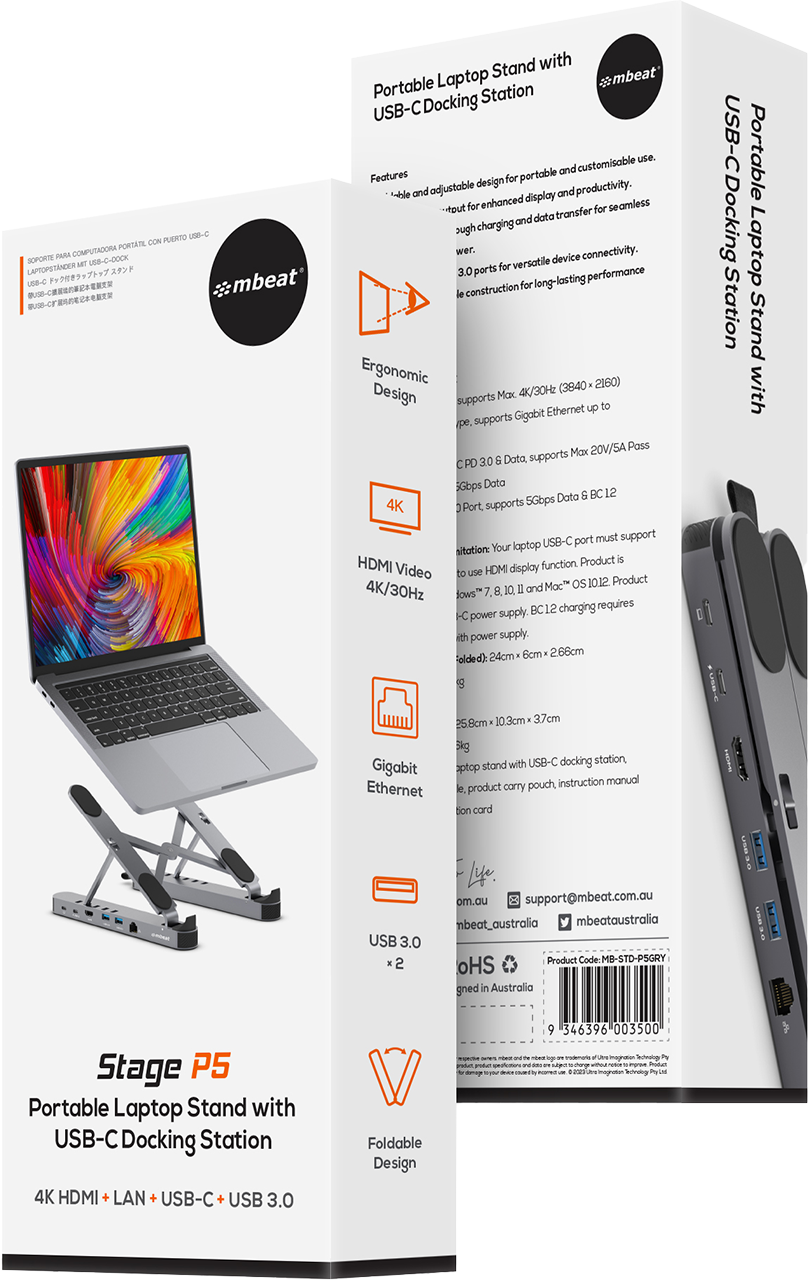 Stage P5 Portable Laptop Stand with USB-C Docking Station