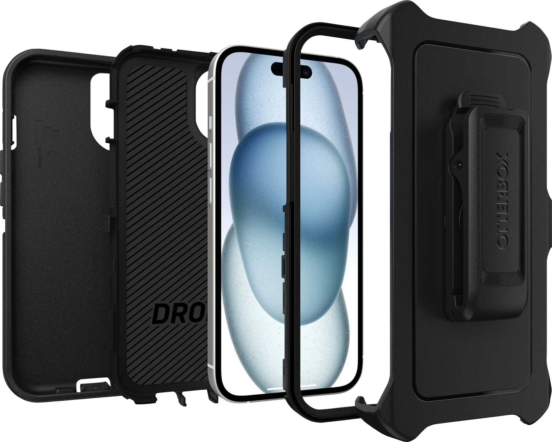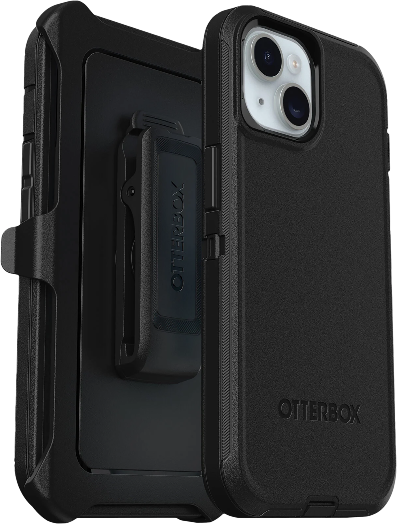 Legendary durable iPhone 15, iPhone 14 and iPhone 13 case, Defender Series, With a multi-layer construction guards your device from serious drops, dirt, scrapes and bumps. Wireless ready, it works with both Qi charging and MagSafe (no magnets in case). Plus, the included holster does double duty as a belt clip or hands-free kickstand.