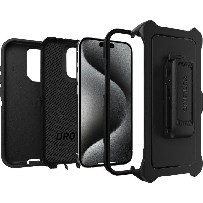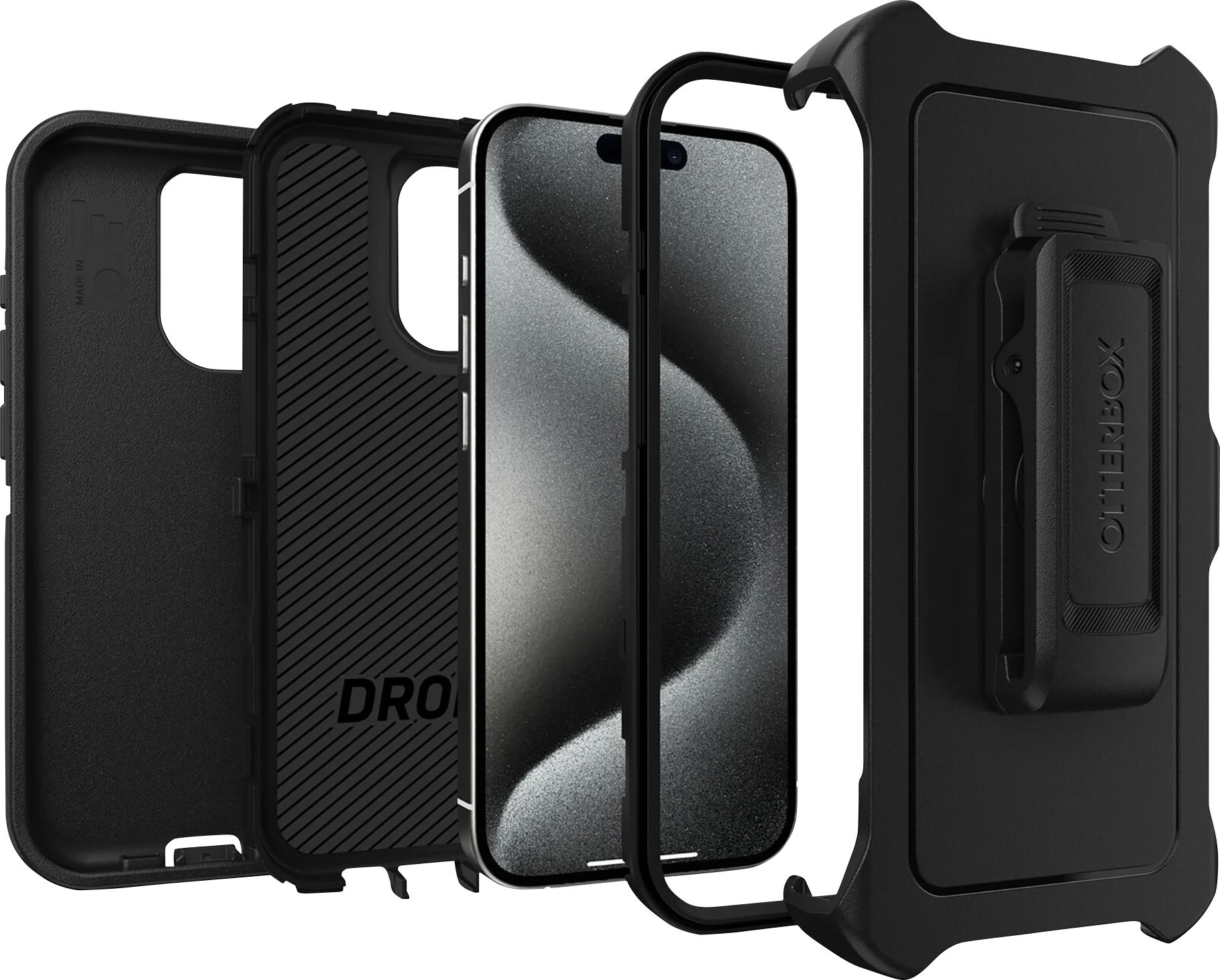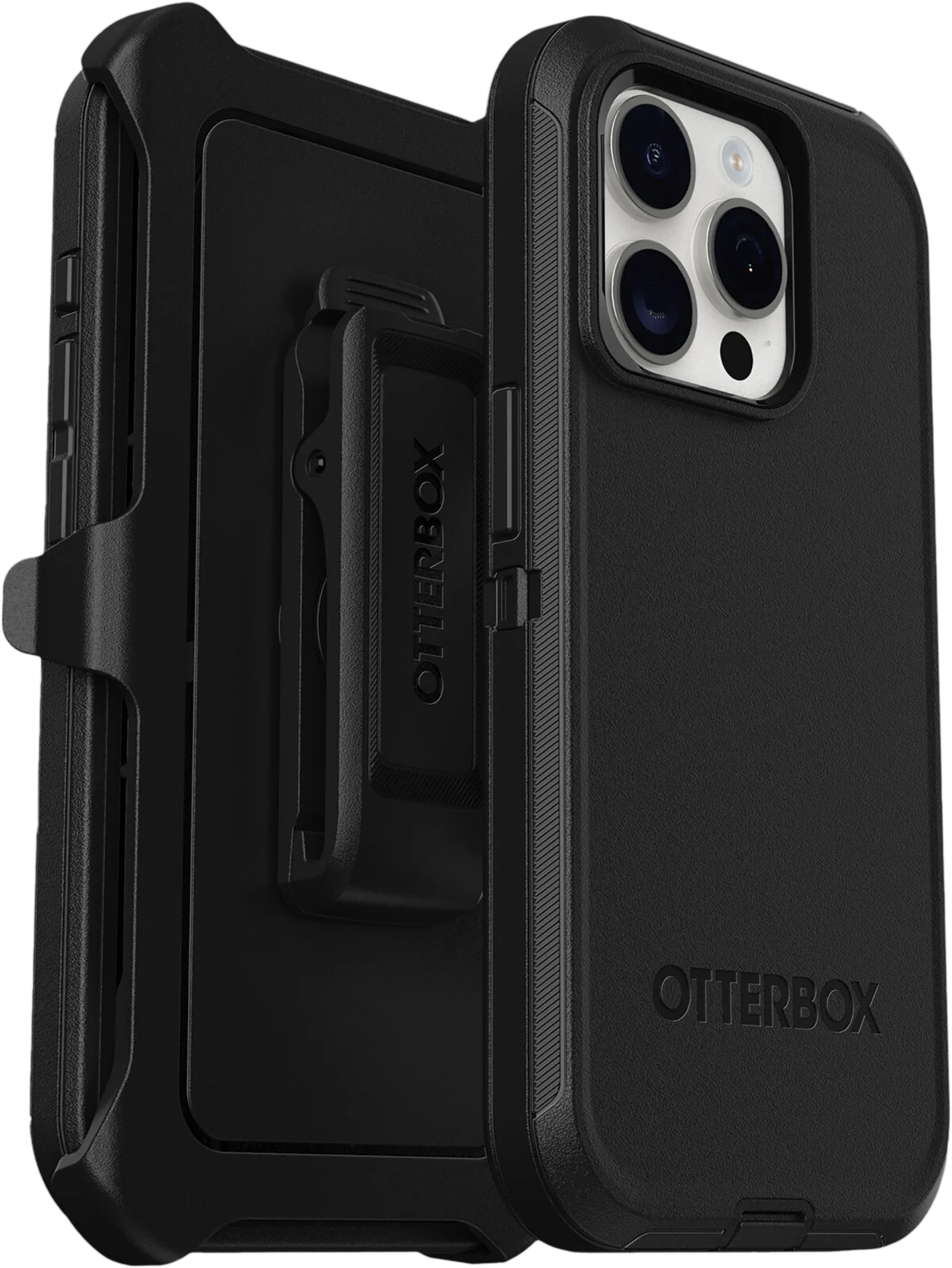 Legendary durable iPhone 15 Pro case, Defender Series, with a multi-layer construction guards your device from serious drops, dirt, scrapes and bumps. Wireless ready, it works with both Qi charging and MagSafe (no magnets in case). Plus, the included holster does double duty as a belt clip or hands-free kickstand.