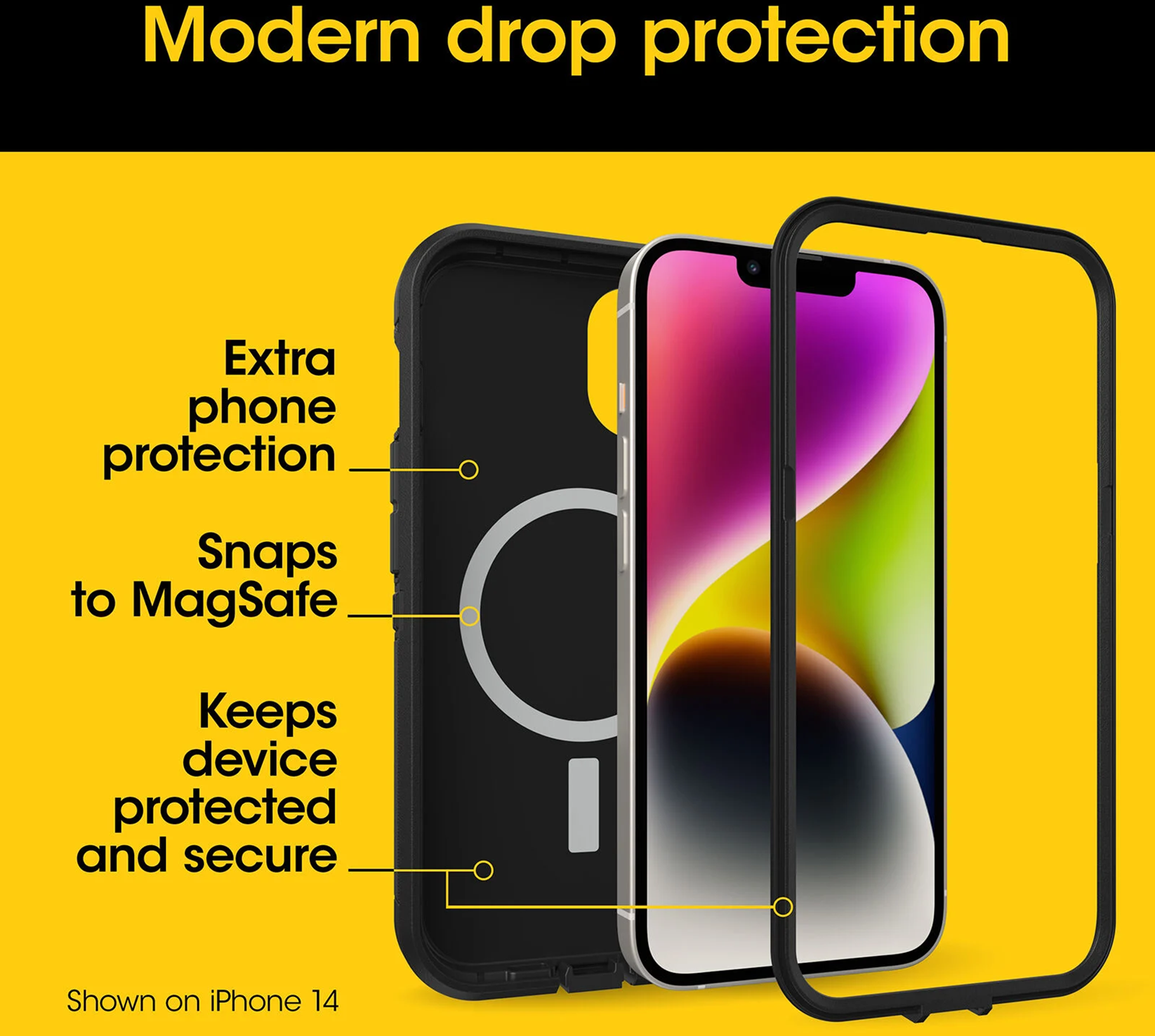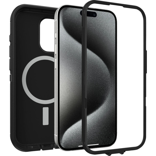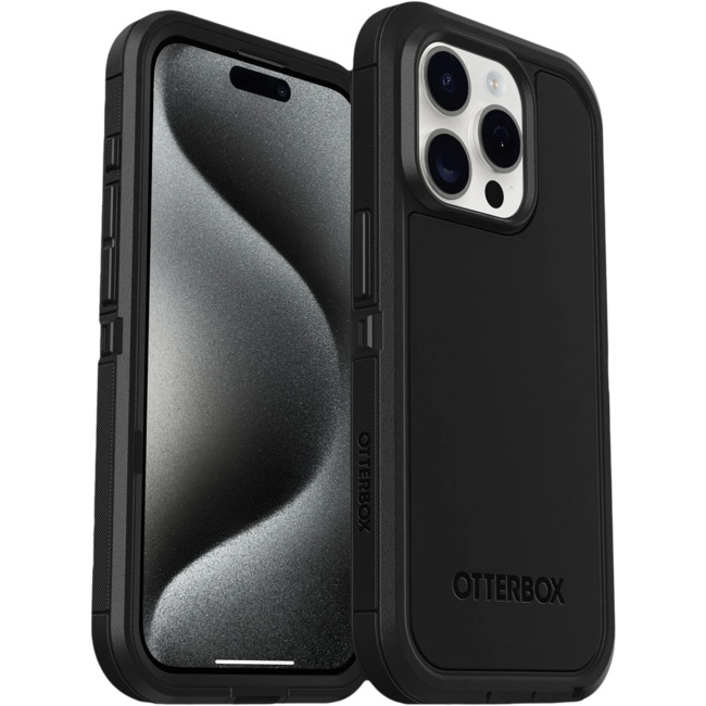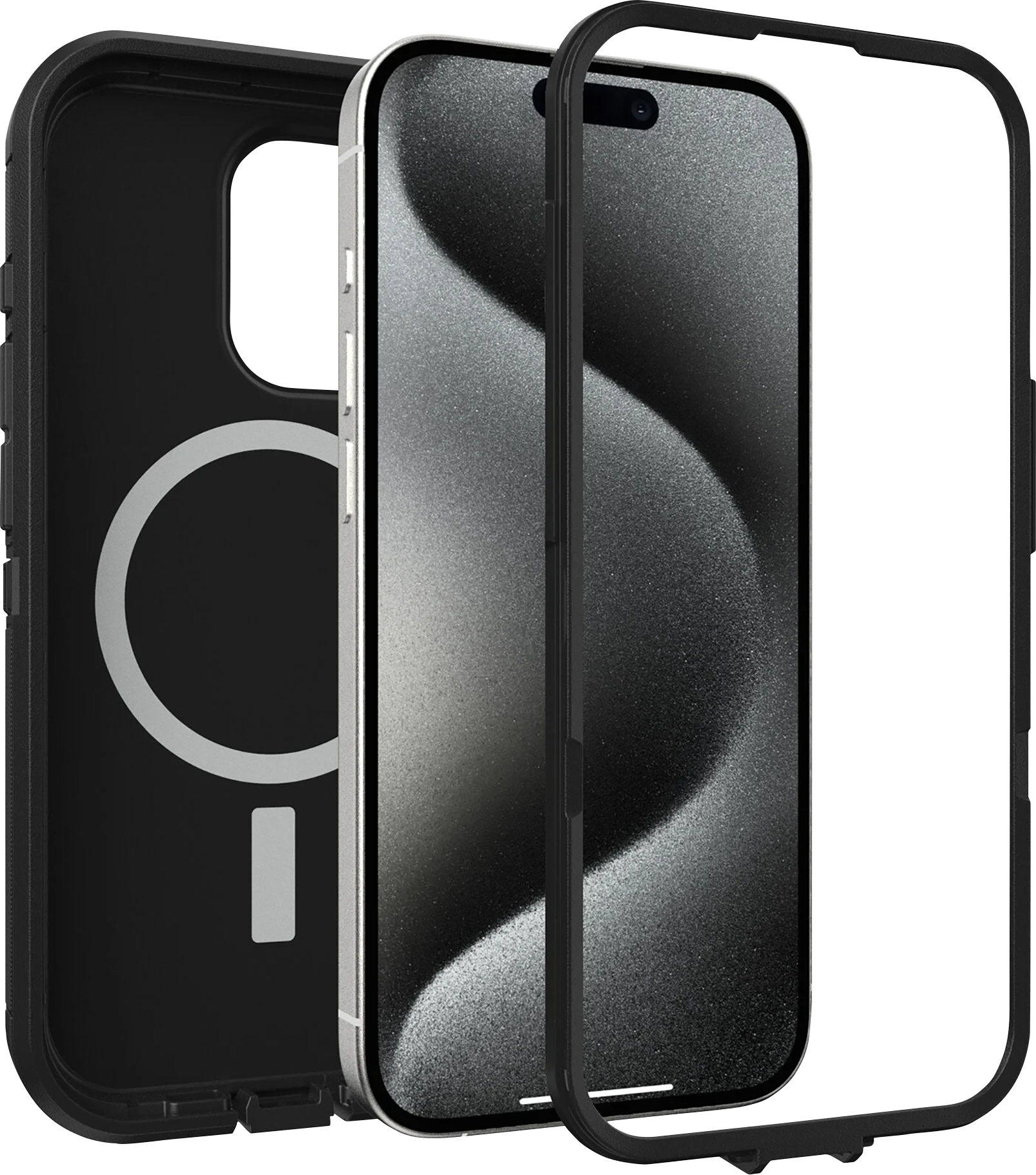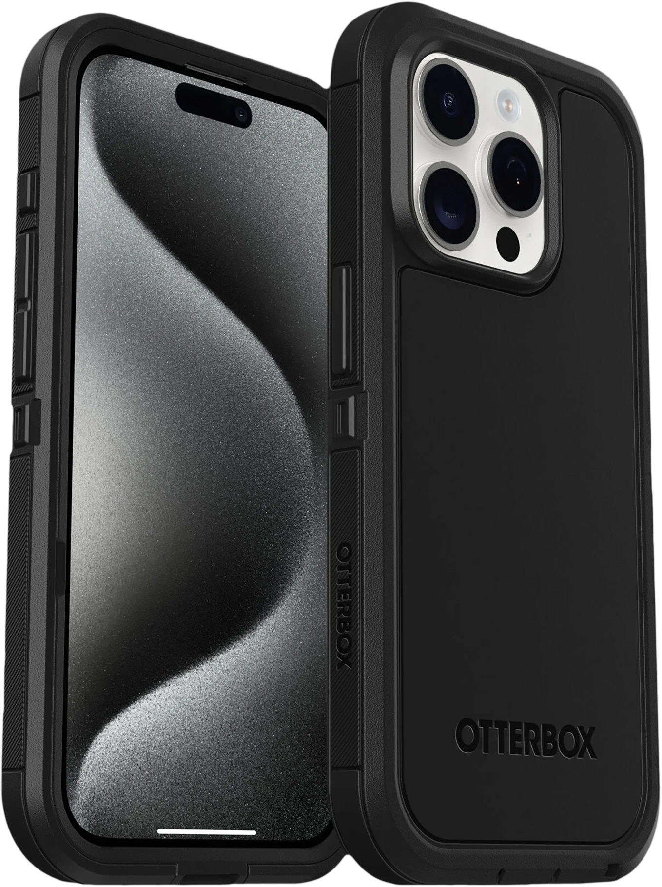 Looking for legendary protection? You’ve found it with the rugged MagSafe iPhone 15 Pro case, Defender Series XT. The premium rugged design displays clean lines with a comfortable grip that guards your iPhone against serious drops, dirt, scrapes and bumps. And, built-in magnets snap to MagSafe chargers and accessories.
