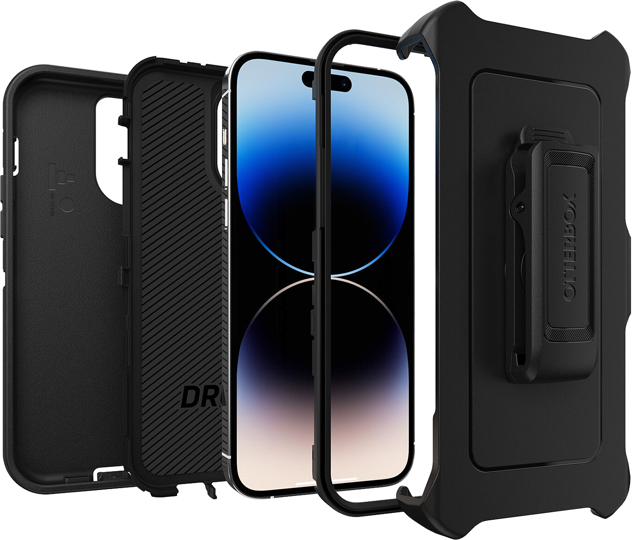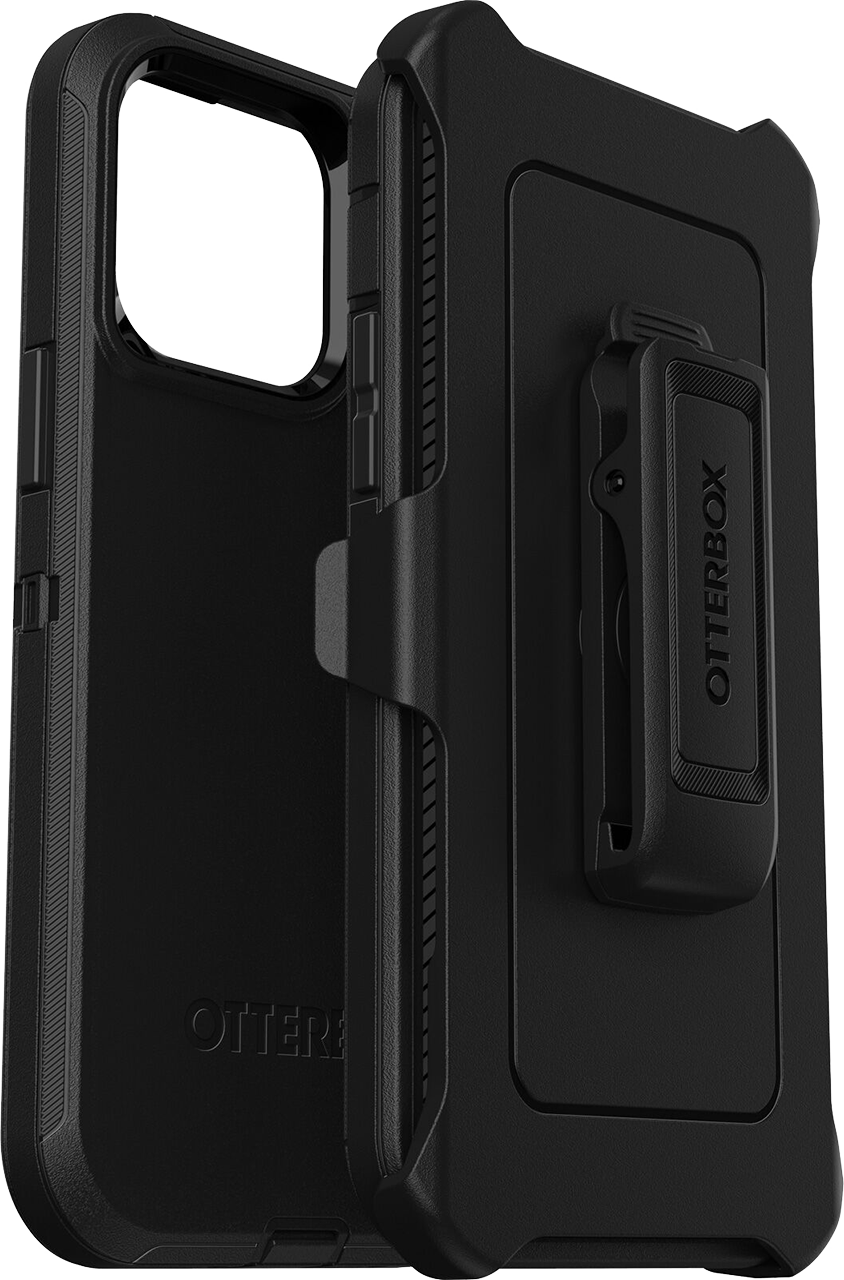Legendary durable iPhone 14 Pro Max case, Defender Series, with a multi-layer construction guards your device from serious drops, dirt, scrapes and bumps. Wireless ready, it works with both Qi charging and MagSafe (no magnets in case). Plus, the included holster does double duty as a belt clip or hands-free kickstand.