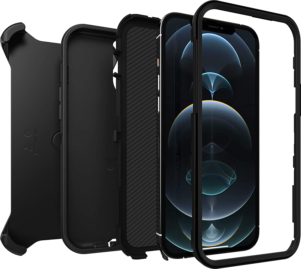 Handle any adventure with OtterBox Defender Series, tthe protective iPhone 12 Pro Maxcase that delivers legendary defense. Its multi-layer construction guards your device from serious drops, dirt, scrapes and bumps. Plus, the included holster doubles as a belt clip or hands-free kickstand.
