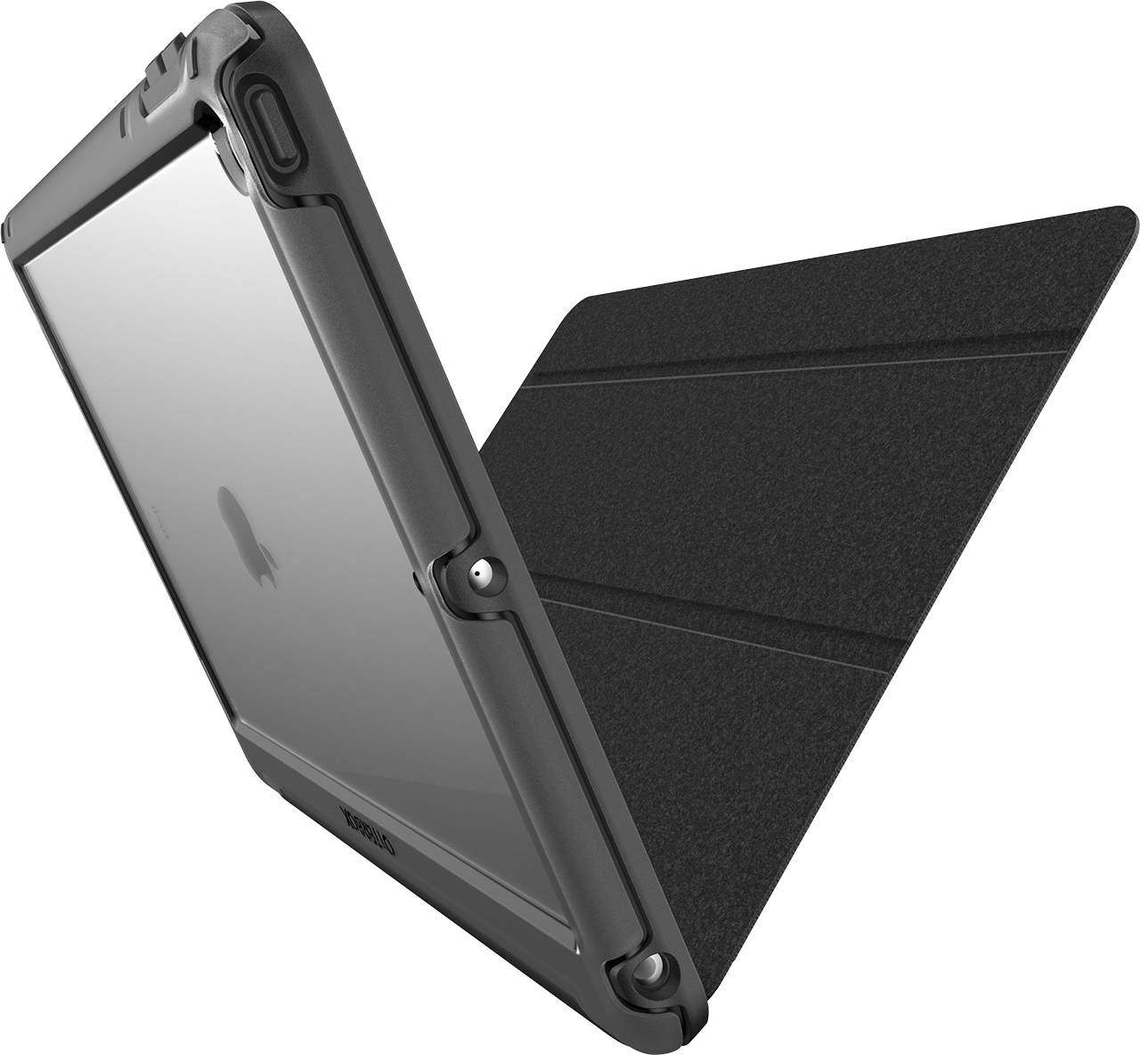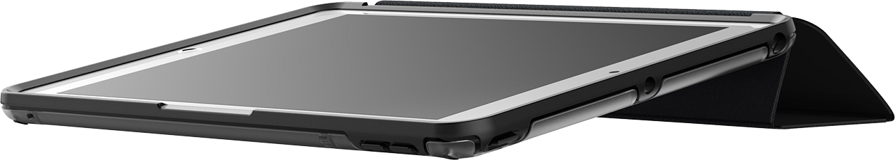 Get the iPad (8th gen) and iPad (7th gen) folio case designed with you in mind ? slim and tough Symmetry Series Folio. The multi-use folio works as a stand and protects thescreen, while the no-skid rubber feet keep your iPad secure on surfaces. Plus, the integrated Apple Pencil holder provides safe storage and quick access.