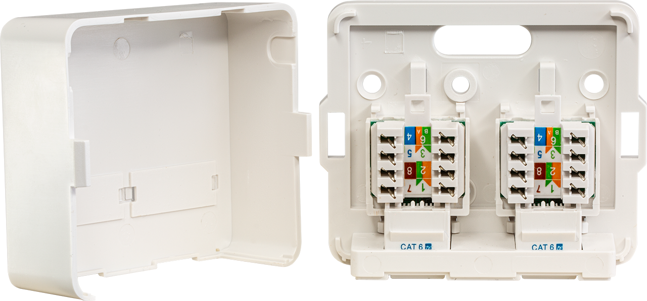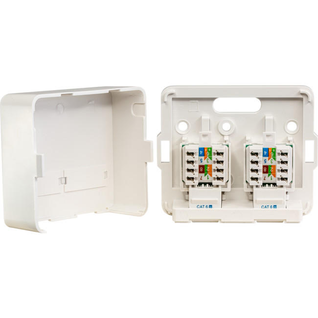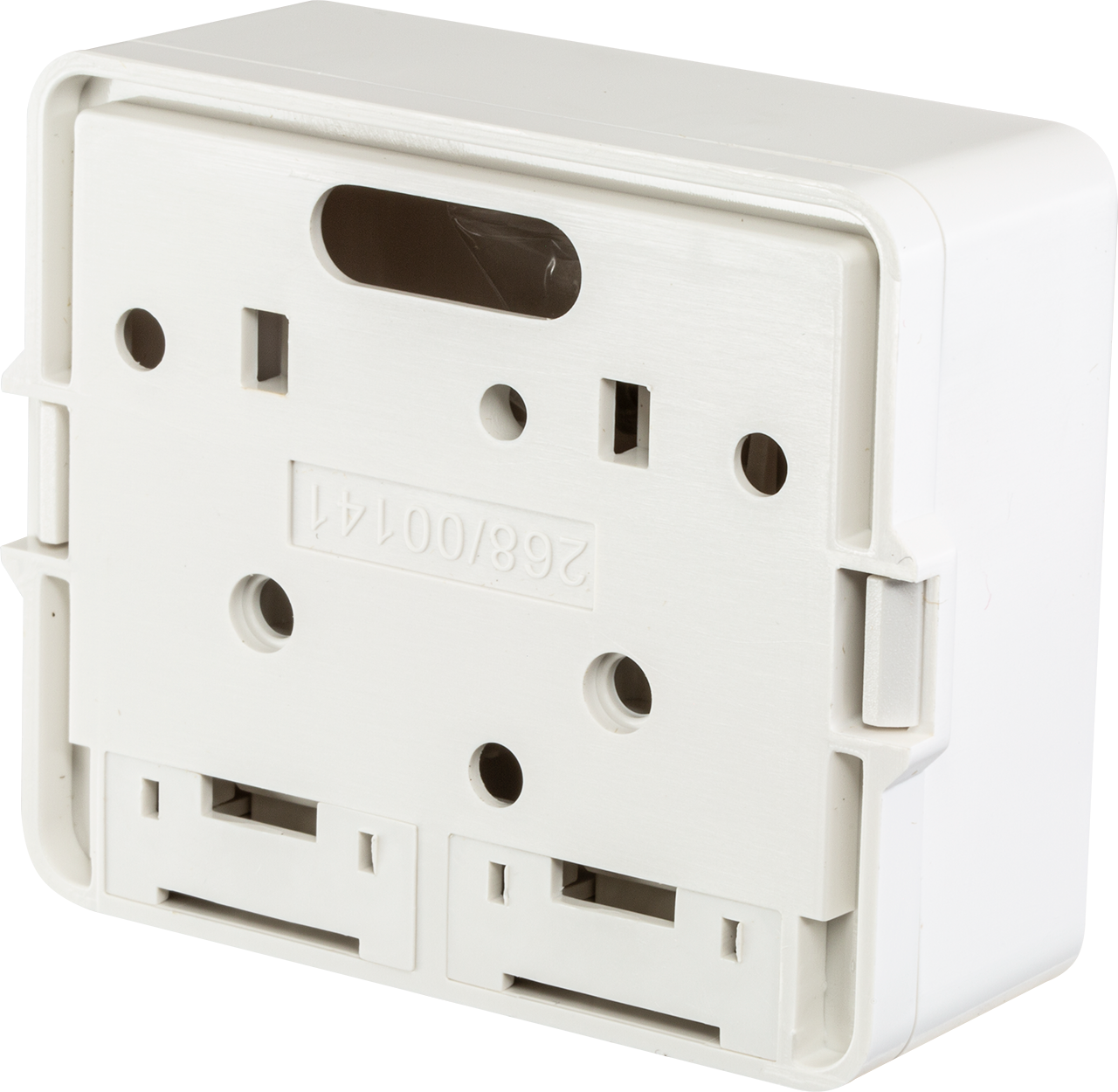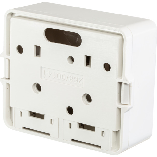 ? Shuttered dual outlet ? Complete with double sided tape, screws and cable tie
