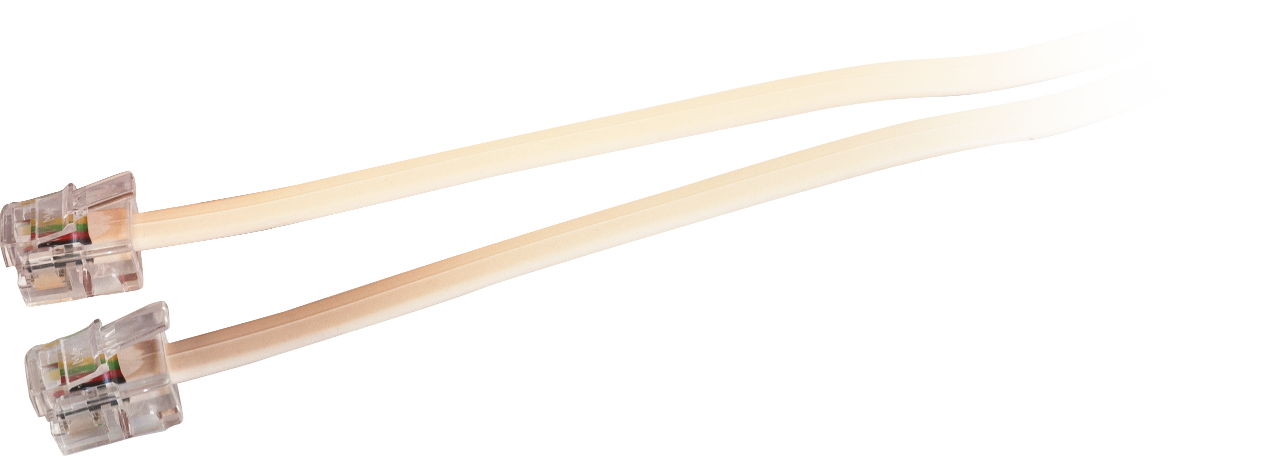 Flat telephone cable fitted on both ends with RJ12 modular telephone plugs.