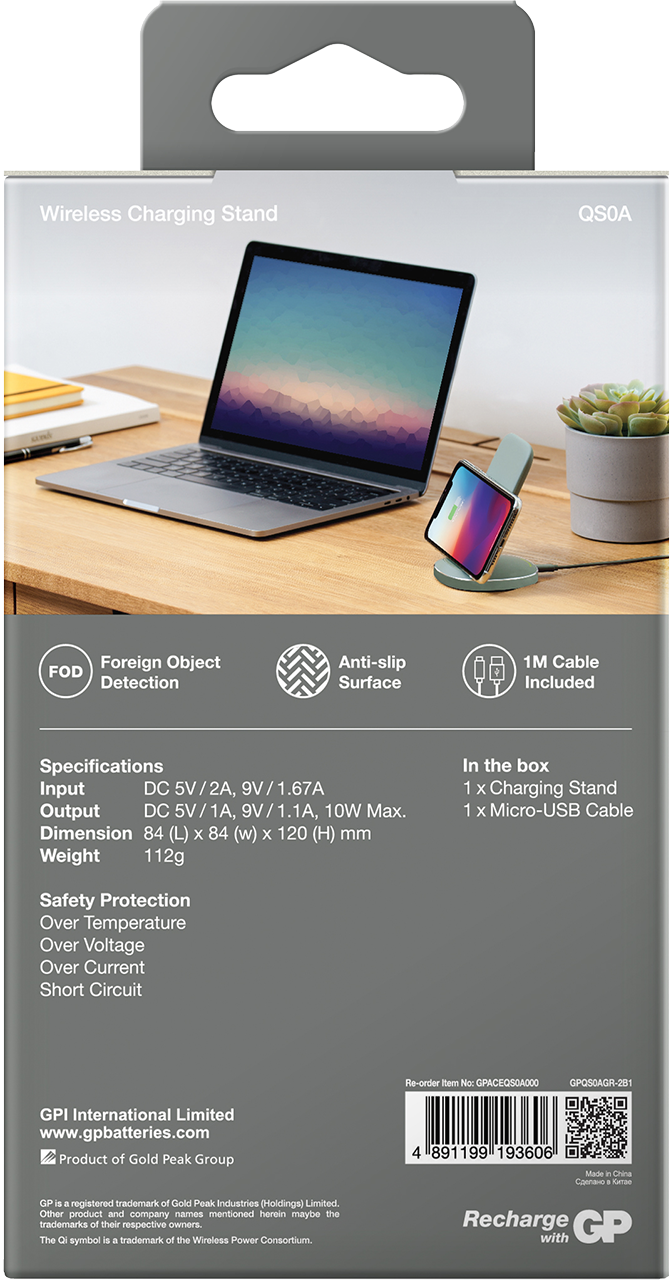 Say goodbye to messy cords with the GP Q-Series Wireless Charging Stand.