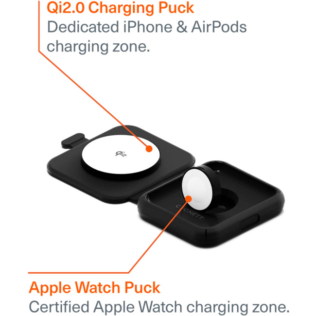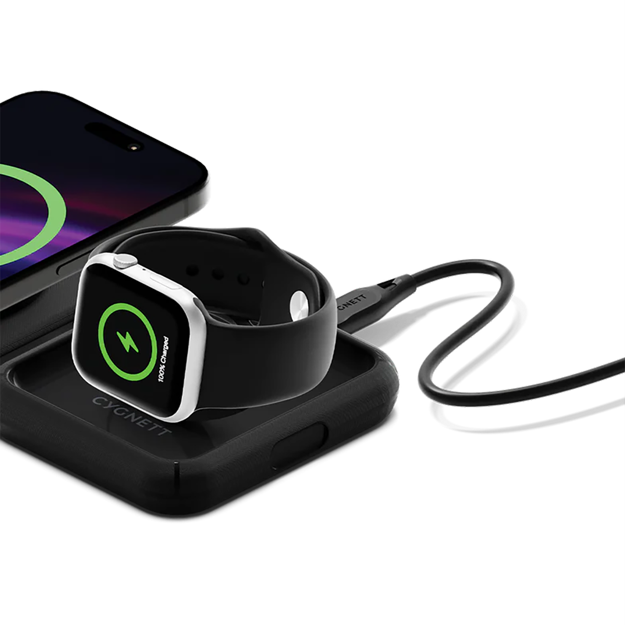 Charge your iPhone and Apple Watch simultaneously with dedicated zones. Easily switch to charge your AirPods, making it an all-in one solution.