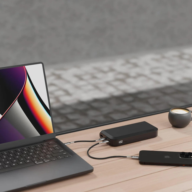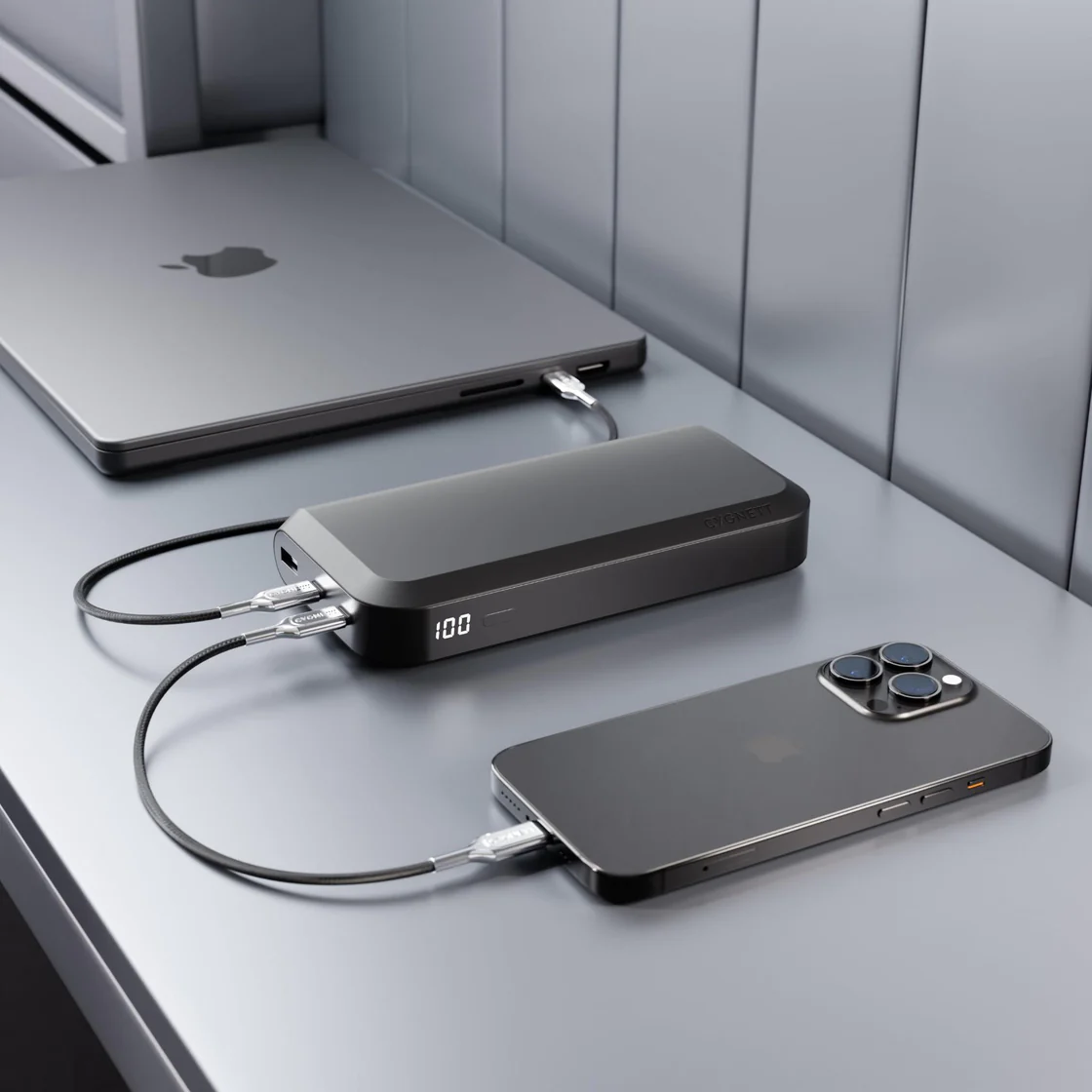 This pro-grade power bank a ffords you the luxury to work, live and play from anywhere. The max charging output of 65W can be delivered from a single USB C port, which combined with a large battery capacity (20,000 mAh), is more than enough to charge powerful USB-C laptops.