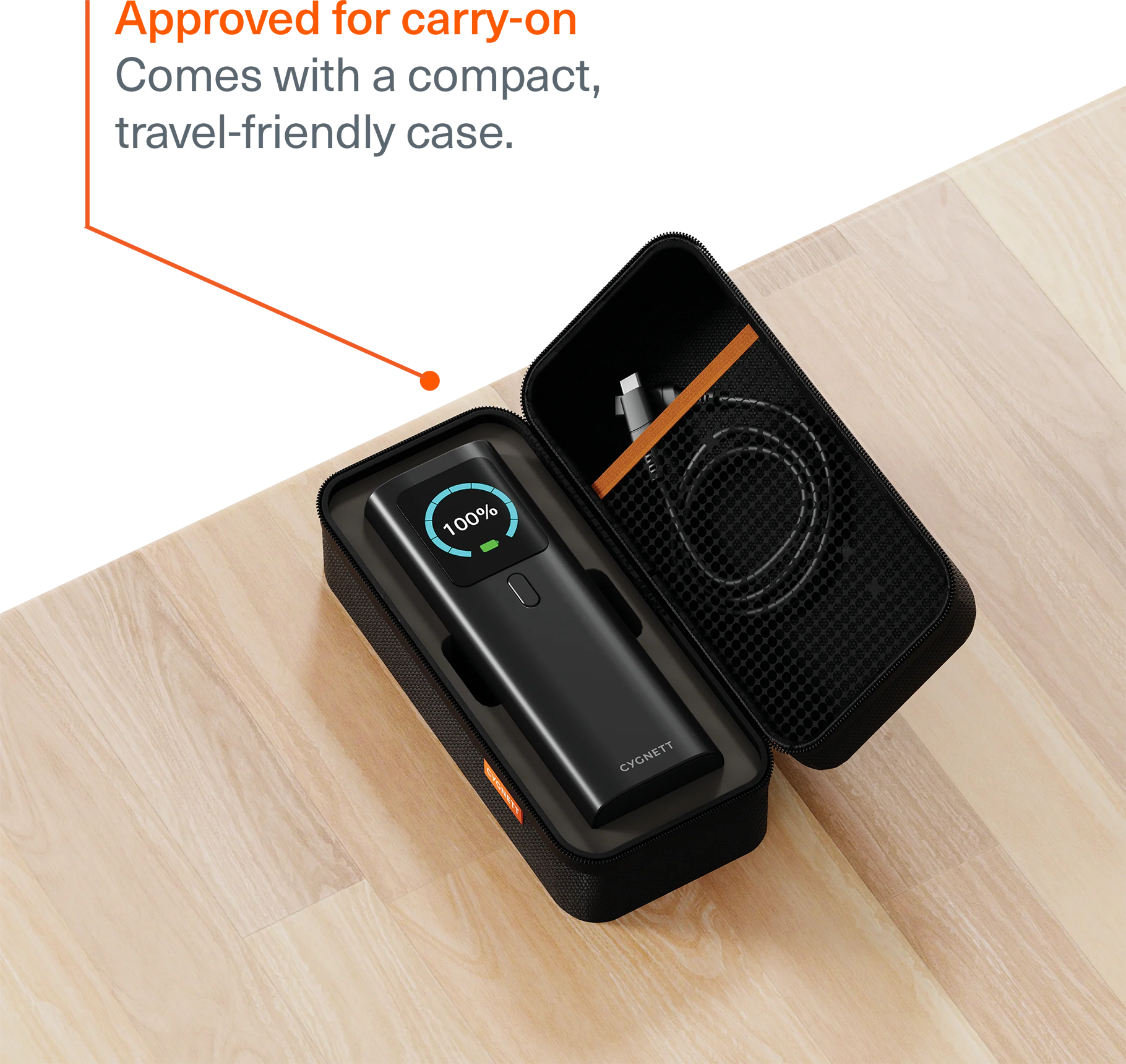 Approved for carry-on (planes) with travel-friendly case