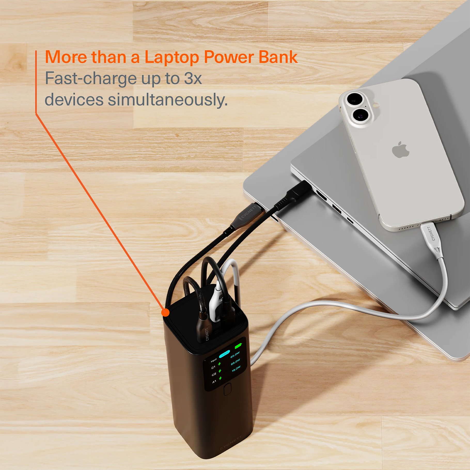Charge your phones, tablets, laptops, earbuds, and other PD-enabled devices quickly and safely using HighPWR. With its large 27,000 battery capacity and three ports that can be used simultaneously, it's the perfect all-in-one solution for all your devices.