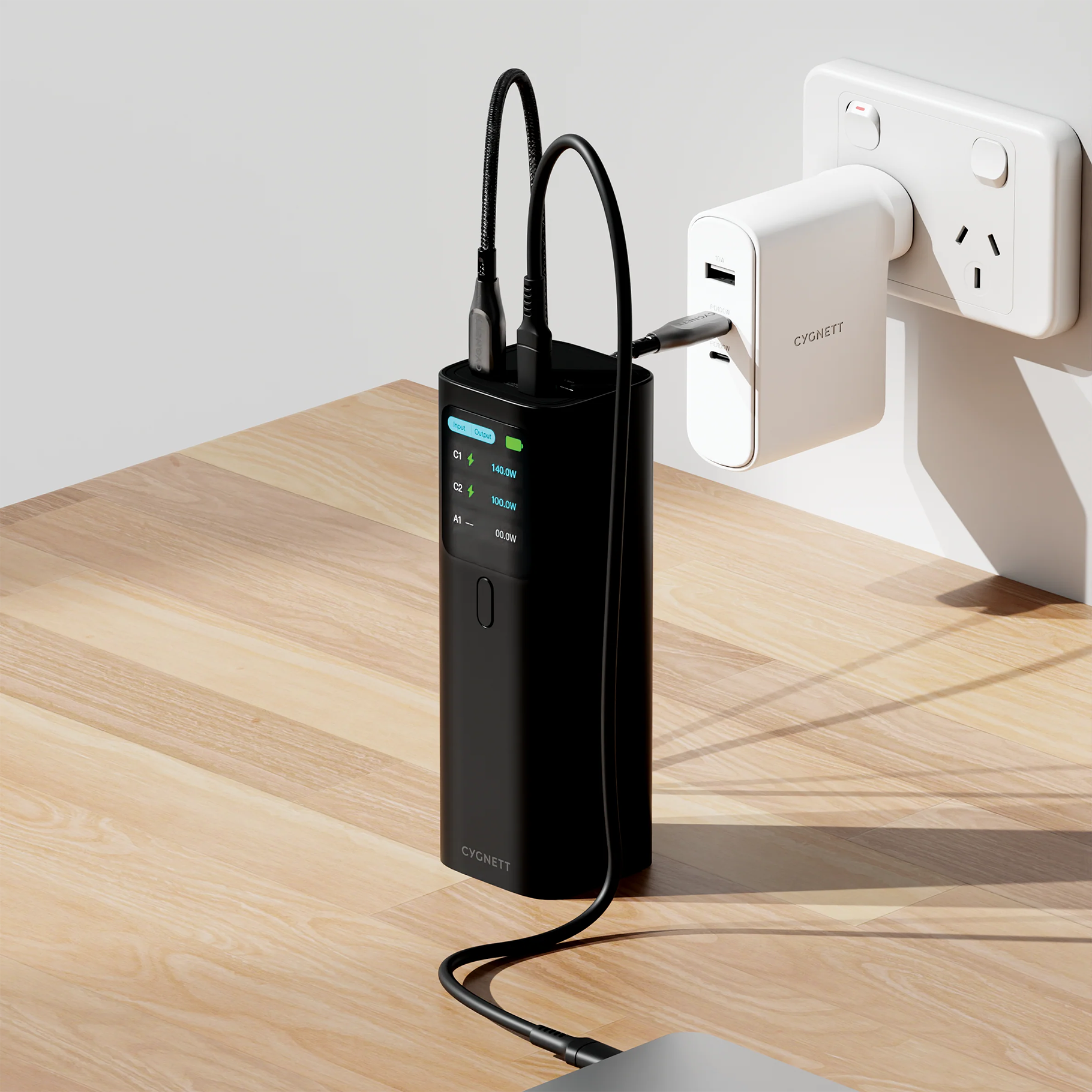 Cygnett HighPWR 27k mAh Laptop Power Bank 148W PD - Black(CY5381PBCHE), 140W Single USB-C, 2x Approved for carry-on, 3 Port, 2 Years Warranty