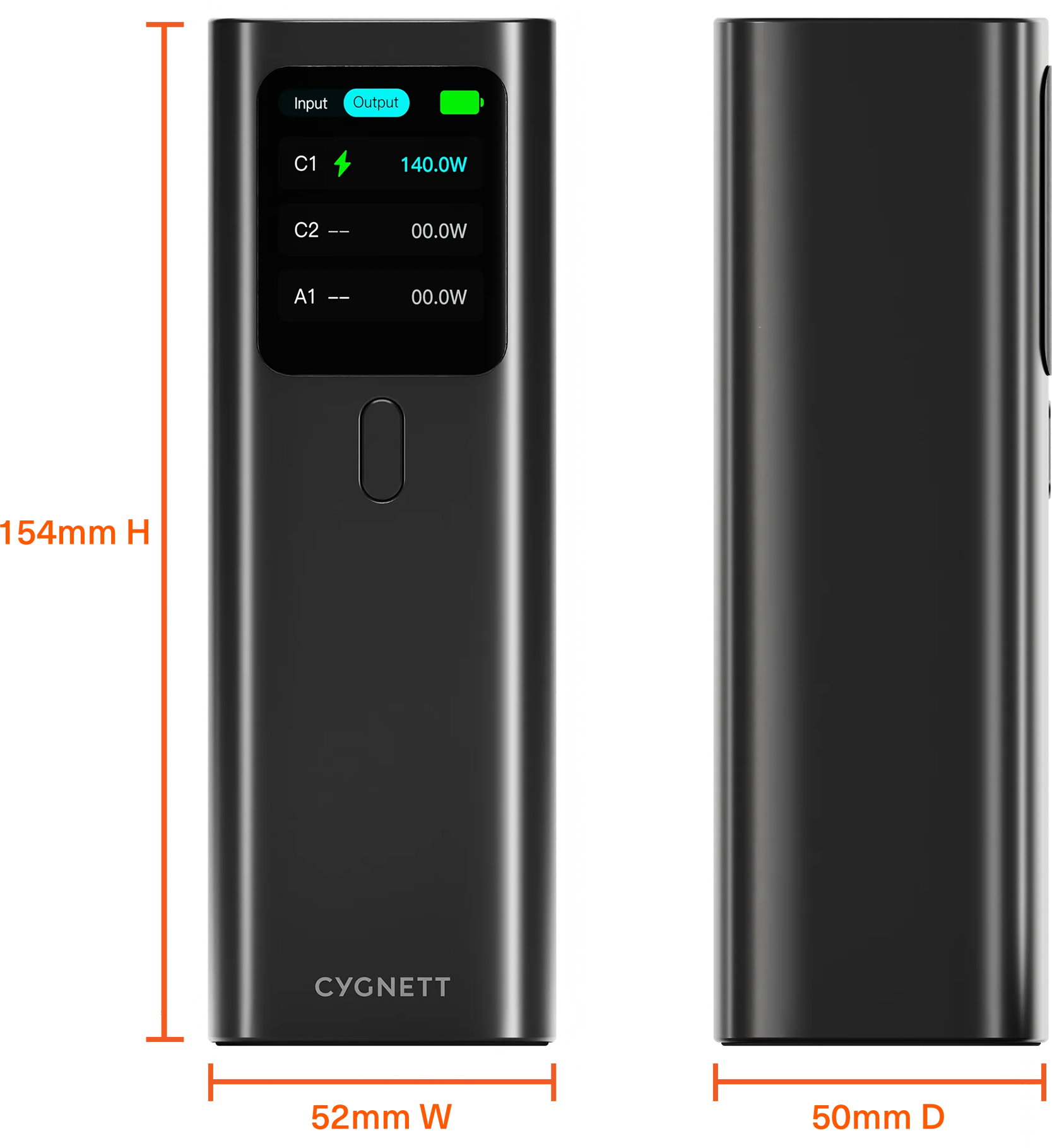 - 52mm (W) x 154mm (L) x 50mm (D)