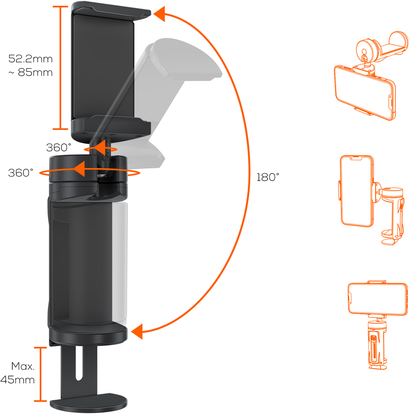 - Support Clamp Mount Width: Max. 45mm