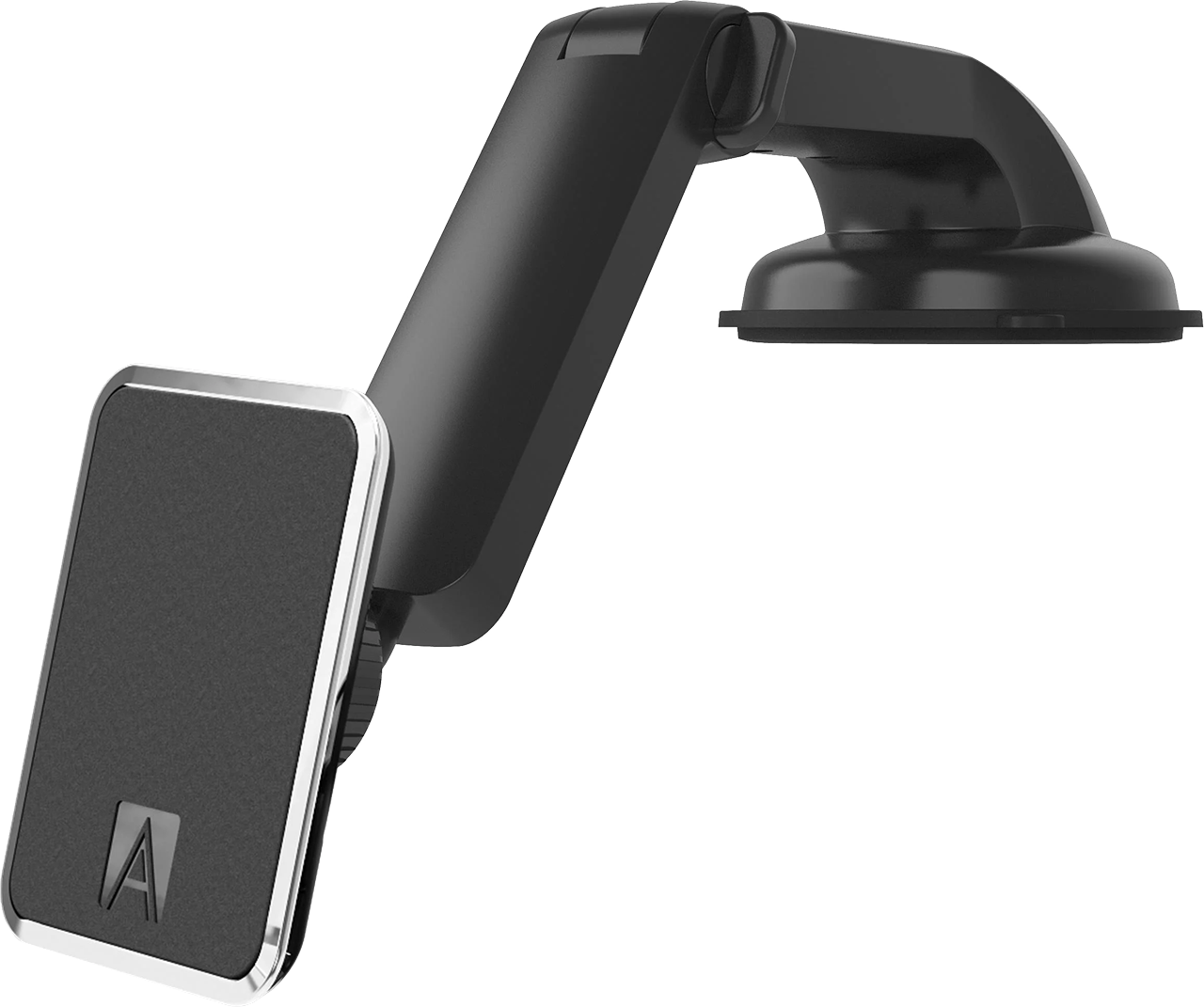 The Aerpro APMPSM2 Magmate Pro Long Arm Suction Mount Magnetic Holder is an innovative magnetic mounting system designed to conveniently and securely mount smartphones, tablets and other mobile devices to the windscreen or dashboard in the vehicle, or any other flat smooth surface around the home or office. The sleek, cradle-free design uses high-powered, device-safe rare earth magnets to secure your device exactly where you need it, with no arms, legs, or brackets to block access to ports or buttons. The gel pad mount with locking suction base attaches securely to any flat smooth surface and the angle adjustable head combined with 360 degree rotation allows the device to be positioned for the best viewing angle. The arm is extendable from 195mm to 220mm and has angle adjustment, giving flexibility when it comes to mounting locations. The kit comes supplied with two magnetic holder plates, one black and one silver, these can be stuck directly to the device or simply placed between the device and its case. The entire system installs effortlessly to keep your hands free and your apps, updates, photos, messages, emails and videos at a convenient and glance-able level. You will be surprised where you will find uses for it throughout your vehicle, office and home.
