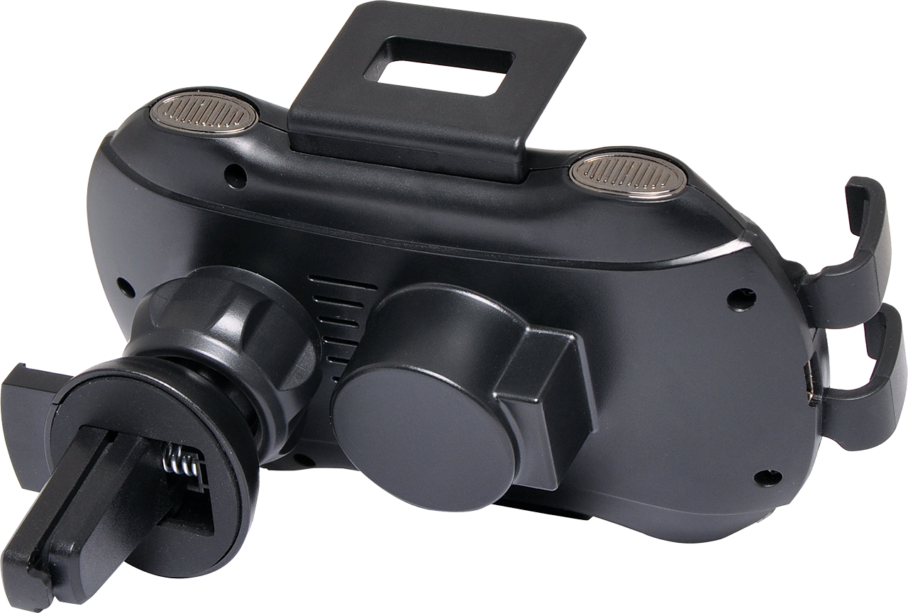 This QI wireless phone mount saves you time in the car. The motorised arms automatically secure your phone in the mount - no fiddling with fitting your phone into the mount! The in-built wireless charger works with Qi wireless charging equipped phones. It fits to your windscreen with a suction cup, or car air-vent via the included clip adaptor. Best paired with a QC3.0 car charger. Suits phones up to 90mm wide (maximum) Please Note: Operates with smartphones fitted with QI charging cases or phones equipped with wireless charging on board (Seethe Qi websitefor full compatibility list.)
