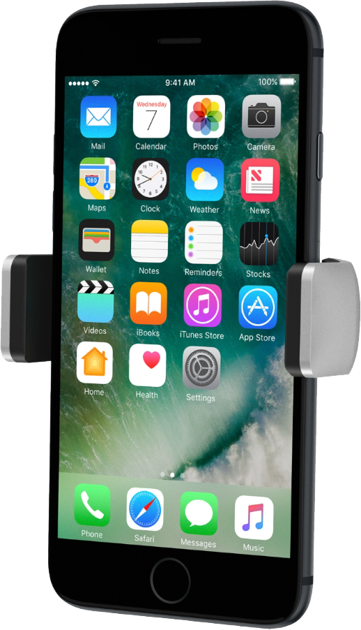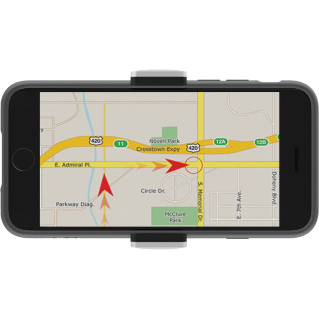 YOUR NEW CO-PILOT The Car Vent Mount provides a hands-free way to view yoursmartphone in the car. Vent Mount fits most large smartphones with screen sizes up to 5.5 inches with a protective case on. This cradle securely attaches your smartphone to an air vent on your car's dash for a convenient optimal viewing level--no suction cup or adhesiverequired. The Vent Mount rotates 180 degrees so you can viewyour smartphone in portrait or landscape mode.