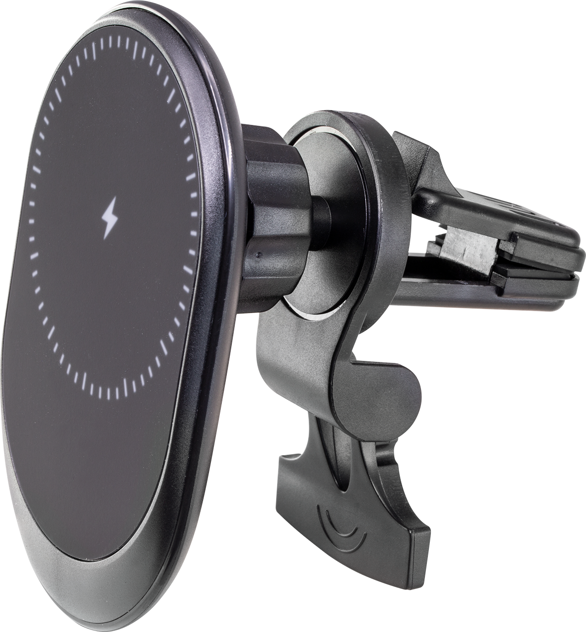 Comfortable, hands-free driving accessory. This Magsafe compatible magnetic wireless charger and car vent mount gives your device a strong magnetic grip. Having your phone secured in place, the vent mount also rotates 360 degrees tomake switching screen modes easy. Charge your phone while you drive, fast and easily with its 15W magnetic wireless charger.