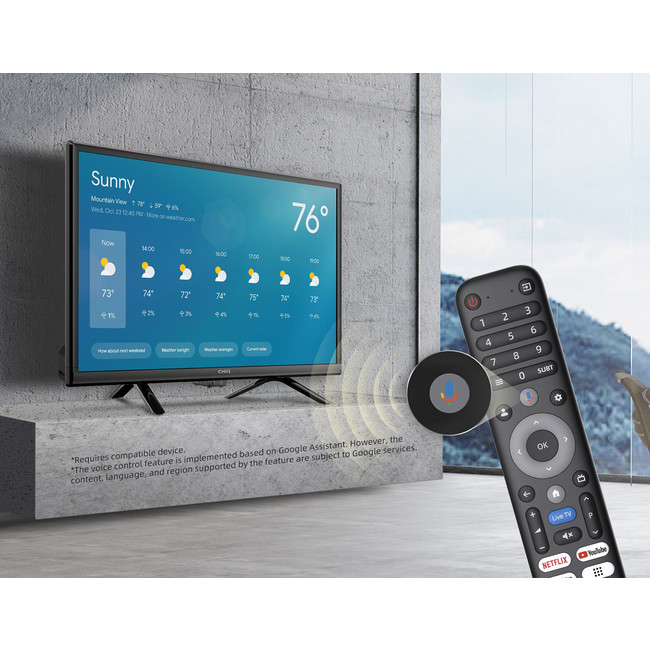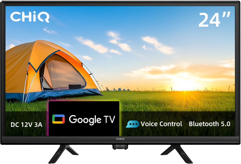 The CHiQ 24" HD Google TV (L24D6CG) is a compact smart TV perfect for bedrooms, kitchens, or caravans. Featuring an HD LED display, built-in Google TV with voice control, Chromecast, and access to popular streaming apps, it delivers great entertainment in a space-saving design. Powered by both AC and 12V DC, it's ideal for home or travel use.