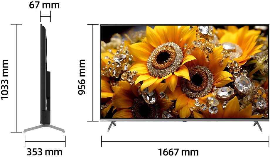 Without Stand (W×D×H) | 1667mm × 67mm × 956mm |