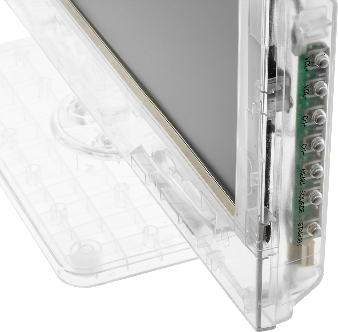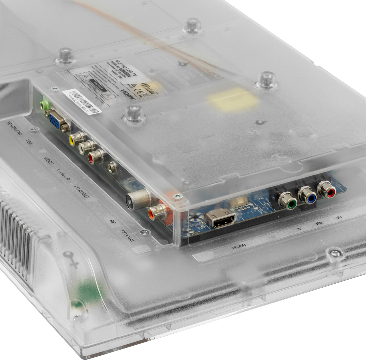The crystal clear frame and accessories including clear remote control and clear power cord allows easy inspection for damage or tampering.