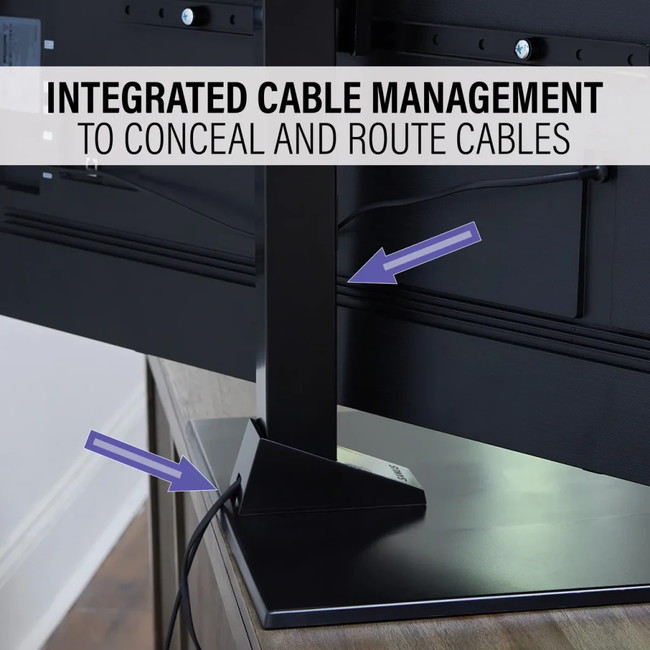 Includes a solid metal base for greater stability as well as integrated cable management to conceal and route cables.