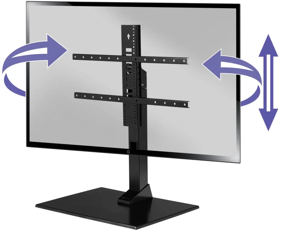 The SANUS Swivel TV Stand is a table-top stand for TVs 40"-86" and the perfect replacement for TV feet.