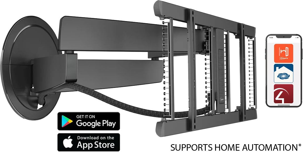 This motorized TV Wall Mount 'MotionMount PRO' is pre-configured for home control systems from Crestron, Crestron Home and Control4.
