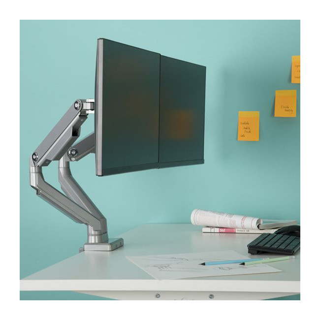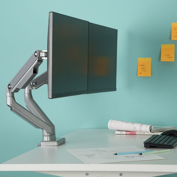 Start being more productive while working healthier with our mechanical spring dual monitor arm!